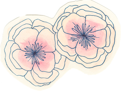 Two hand-drawn pink roses