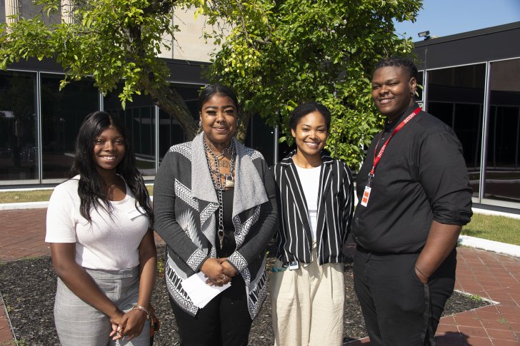 2019 Summer Interns in the Sculpture Garden. From left: Tiani Oakes, Audjanae "Melly" Gregory, Darcy Spencer, and Nyles Moore. Photograph by Tom Loonan.