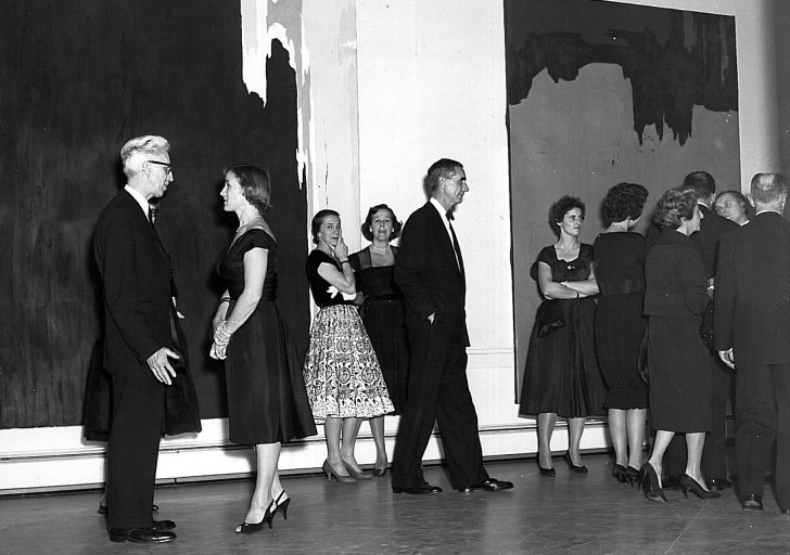 The artist and others at the Members’ Opening for Paintings by Clyfford Still, Albright Art Gallery, November 4, 1959. Image courtesy of the Albright-Knox Art Gallery Digital Assets Collection and Archives.