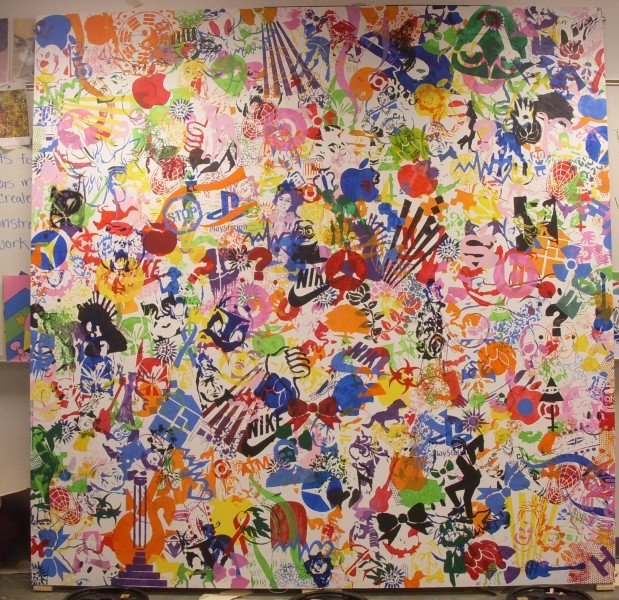 Something About the Collaboration Between Art and Language, created by Rachel Lyons’s high school students at Buffalo Academy for the Visual and Performing Arts and inspired by Ryan J. McGinness’s work Something About the Collapse of Art & Language, 2013.