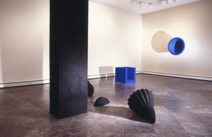 Kapoor employs such diverse materials as chalk, wood, or polystyrene covered with a combination of cement and earth to achieve a harmony in his work that reconciles essentially opposing qualities. This exhibition features Dark, a four-part sculpture of mixed media from 1986, and Untitled, 1984, a mixed media wall piece covered with blue pigment.