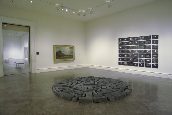 To accompany her exhibition, Julie Mehretu: Drawings into Paintings, the artist selected works from the museum collection that resonate with her own concerns with historical narrative, the intersection of figuration and abstraction with place and space, and articulating personal language of signs and symbols. Mehretu's selections spanned the range of the collection chronologically—from Albert Bierstadt’s The Marina Piccola, Capri, 1859, to Kara Walker’s African/American, 1998—and materially—from Nancy Grave's large-scale drawing Grand Canyon of Mars—5,000 kilometers along Martian Equator, 1973, to Richard Long's sculptural installation Santa Cruz Circle, 1997—as organized under three different themes: History/Space/Abstraction, Artists’ Personal Languages, Intimate Works (Landscapes, Seascapes, Moonscapes).