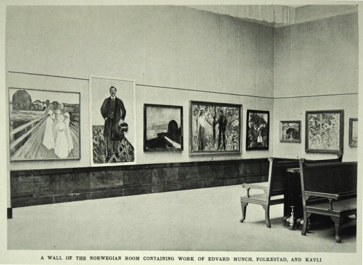 Installation view of Contemporary Scandinavian Art at the Albright Art Gallery (January 4–26, 1913). Image courtesy of the G. Robert Strauss, Jr. Memorial Library, Albright-Knox Art Gallery, Buffalo, New York, The Buffalo Fine Arts Academy Notes; Volume No. 8, 1913. © 2021 Albright-Knox Art Gallery