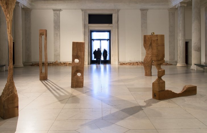 This was the first solo museum exhibition in the United States for the Rochester-born, Berlin-based artist. The exhibition featured work created from 2012 to the present, including a new group of carved sculptures created in 2015 for the Sculpture Court of the Albright-Knox.