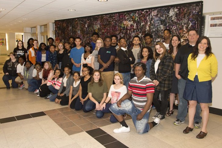 Buffalo Academy for Visual and Performing Arts students and teachers (at right) with their mural Five Buffalos, 2016. Photograph by Tom Loonan.