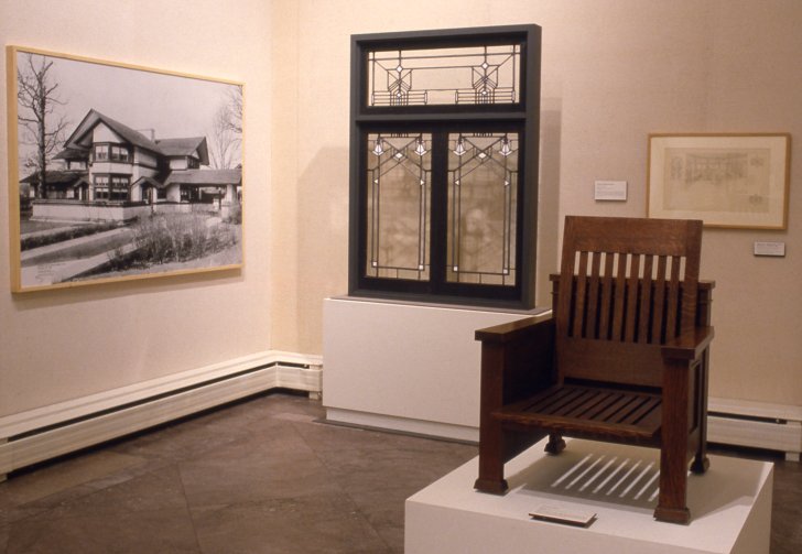Among the important pieces on view were an 1899 dining set designed for the Joseph W. Husser house in Chicago, and a major group of windows from the Avery Coonley Playhouse in Riverside, Illinois, Wright designed the group in 1912. Also on display were windows and objects ranging from oak furniture designed for the Wright’s Prairie-style houses to plywood forms designed for his Usonian houses.