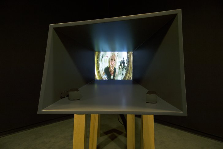 The two works presented in this exhibition—Good Night Good Morning, 1976, and My New Theater VI, Good Night Good Morning '06, 2006—contemplate the passage of time, the process of ageing, and the artist’s self-identity. To create the 1976 video, Jonas spoke directly to the camera, as if it was a mirror, and wished it a “good morning” and a “good night” each day over the course of three weeks. In 1997, Jonas began a new series entitled “My New Theater,” 1997–2006, as a means to make public her creative process via small, portable theaters she calls “worlds in miniature.” The integration of sculpture and performance in these works is drawn from aspects of her studio practice. In My New Theater VI, Good Night Good Morning ’06, Jonas observes herself just as the viewer might observe her. Now aged seventy, she revisits her 1976 work. In this later version, however, she looks indirectly into the camera via a mirror, demonstrating a more playful side of herself in contrast to the stoicism of her performance many years prior. Together, these two works form a powerful self-portrait of the artist, as well as an illustration of the changes her work has undergone during the past three decades.