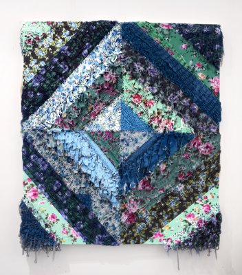 Manuela Gonzalez (Lives and works in Lake Worth Beach, Florida). Inanna, 2024. Acrylic on mixed fabrics / Acrílico sobre tejidos mixtos. Overall 66 × 58 × 2 in. (167.6 × 147.3 × 5.1 cm). Collection of the artist.