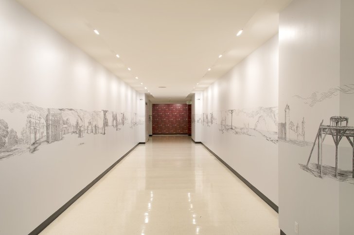 The first iteration of Millie Chen’s Miseries & Vengeance works debuted in the exhibition Surveyor at the Albright-Knox in 2011; it consisted of hand-drawn imagery printed and applied directly on the walls of two adjacent galleries. The Miseries & Vengeance Wallpapers reproduced the imagery used for the original work as wallpaper, printed from high-resolution digital photography by Biff Henrich / IMG_INK. The Miseries & Vengeance Wallpapers was proposed for acquisition and acquired for the museum’s collection in March 2013.