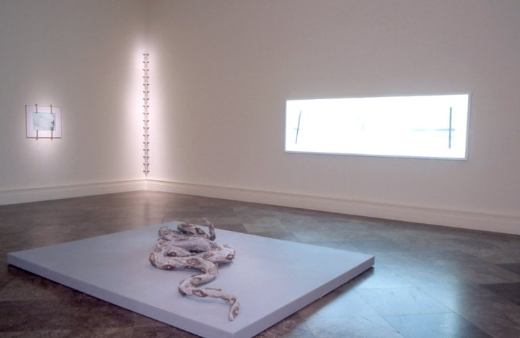 British artist Cathy de Monchaux installed a series of sculptures that explore the tension between opposites. De Monchaux's exquisite constructions deal with gender, and blur the boundaries between the beautiful and the repulsive, the hard and the soft, the functional and the decorative. Her seminal shapes incorporate both machine-made and organic materials, including glass, rusted steel, brass, paper, leather, and concrete. A color brochure accompanied the exhibition, with an essay by Assistant Curator Claire Schneider.