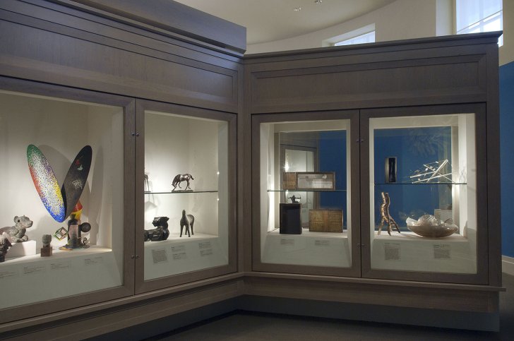 Telling Tales featured a selection of small sculpture and other works that tell stories. Some of the stories were about spiritual beliefs, including those of Tahiti, Russia, and ancient Egypt. Other works reflect on politics and society—for example, Jirí Kolár's evocation of Greece in Cycladic Heads, 1976, Honoré-Victorin Daumier’s satiricial figure Ratapoil, ca. 1850–51, and Ernst Barlach’s moving World War I work The Avenger, 1914 (cast executed after World War II). Stories about people and families included Janine Antoni’s unusual sculpture Umbilical, 2000, featuring the family silver, and Medardo Rosso’s enigmatic Eta d’oro (The Golden Age), 1886. One section of the exhibition included sculpture of various animals, including horses, dogs, and deer. Still other works told stories about process and artistic materials, including Arman’s Paintbox, 1970, which has rarely been on view. Finally, imaginary stories were inspired by several of Joseph Cornell’s fantastic boxes and Charles Frederick Simonds’s compelling sculpture Number II (Ritual Furnace), 1978.