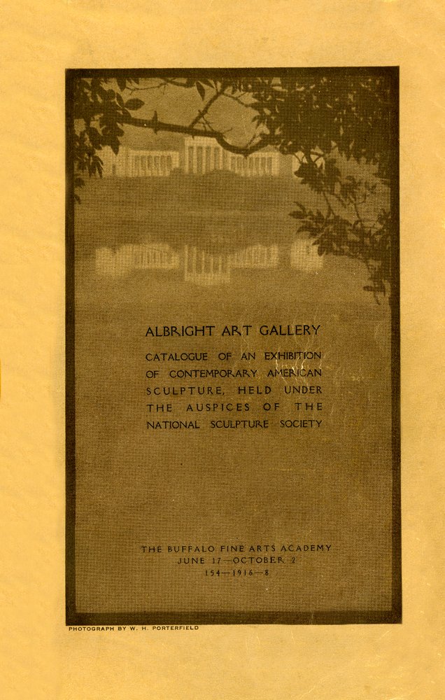 This catalogue was published on the occasion of the "Exhibition of Contemporary American Sculpture, Held Under the Auspices of the National Sculpture Society," which was on view at the Albright Art Gallery from June 17 to October 2, 1916.