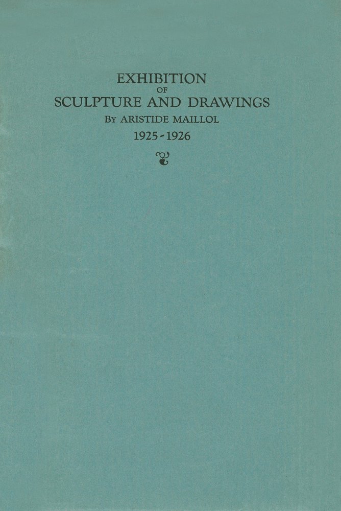 This catalogue was published on the occasion of the exhibition "Exhibition of Sculpture and Drawings by Aristide Maillol, 1925–1926," which was on view at the Albright Art Gallery from November 15 to December 14, 1925. The exhibition also traveled to the Brummer Gallery; Museum of Fine Arts, Boston; Art Institute of Chicago; Art Gallery of Ontario; Denver Art Museum; Cleveland Museum of Art; Saint Louis Art Museum; Art Institute of Omaha; and the Memorial Art Gallery.