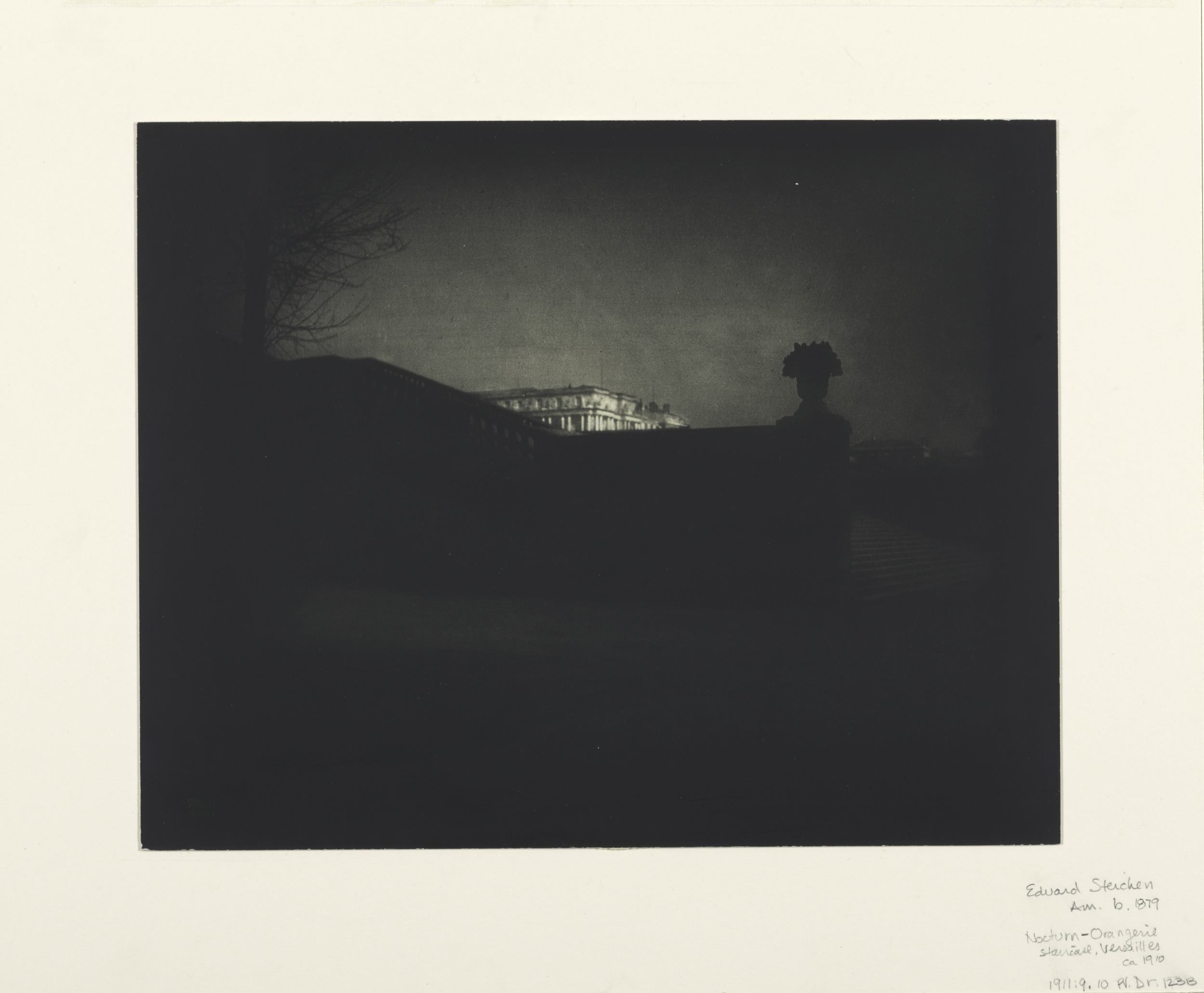 Edward Steichen (American, 1879–1973). Nocturne-Orangerie Staircase, Versailles, ca. 1910. Gum bichromate print, 18 1/4 x 21 1/2 x 1 1/8 inches (46.4 x 54.6 x 2.9 cm). Collection Albright-Knox Art Gallery, Buffalo, New York; General Fund, 1911 (1911:9.10).