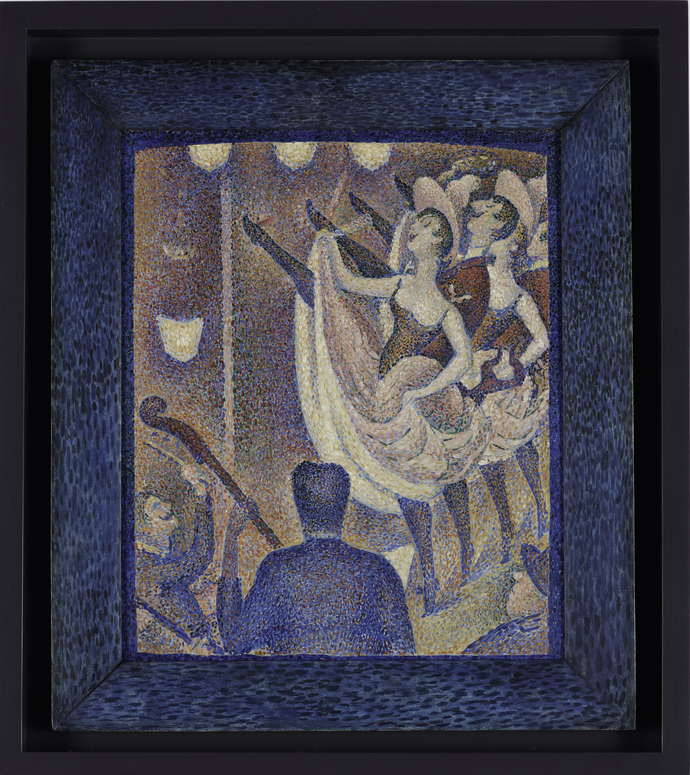 Georges Seurat (French, 1859-1891). Étude pour "Le Chahut" (Study for "Le Chahut"), 1889. Oil on canvas in artist frame, 26 5/8 × 23 × 1 inches (67.6 × 58.4 × 2.54 cm). Collection Albright-Knox Art Gallery, Buffalo, New York; General Purchase Funds, 1943 (1943:10).
