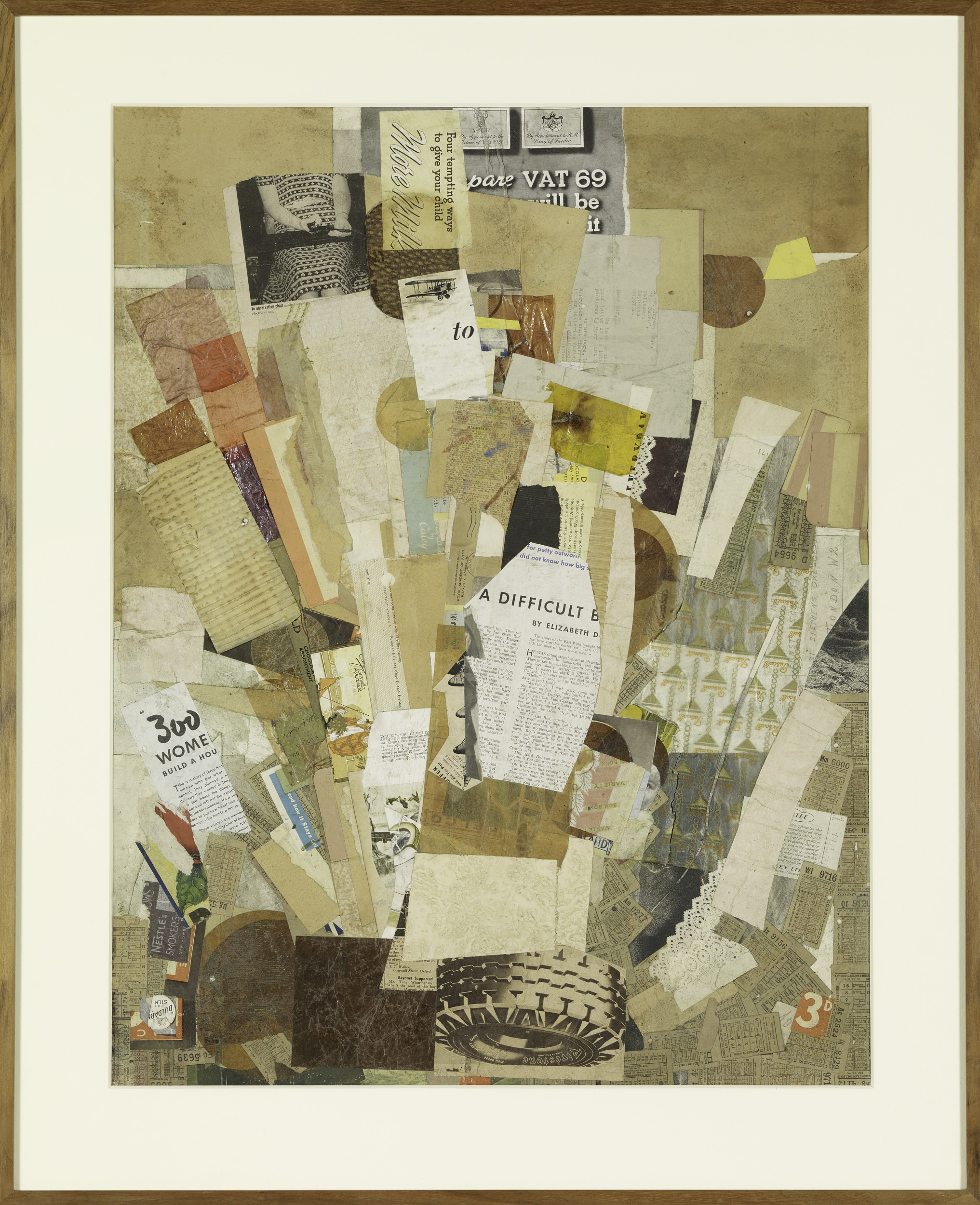 Influenced by Cubism, in 1918 Kurt Schwitters began making collages in a style he called “Merzbilder” (or “Merzpictures”). The term “Merz” comes from the German phrase “Kommerz und Privatbank,” which the artist found on a scrap of newsprint. Collages like Difficult were born out of poverty in post–World War I (1914–18) Germany; Schwitters literally created his art out of the physical ruins of the culture. “I felt myself freed [from the war] and had to shout my jubilation out to the world,” he recalled. “Out of Parsimony [frugality] I took whatever I found to do this, because we’re now a poor country.”