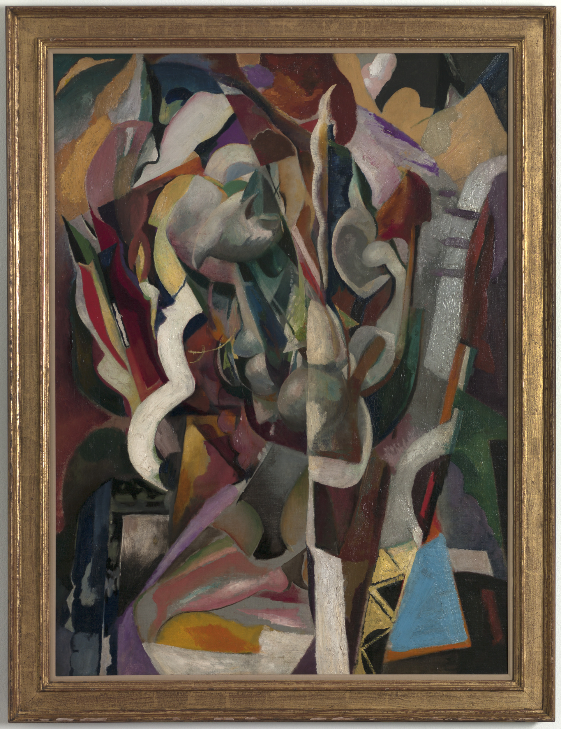 During the 1930s, Arthur Beecher Carles began to experiment with an uninhibited abstract style. First he explored a colorful palette, reminiscent of the work of the Fauves, and then he moved on to completely nonfigurative imagery that vacillates between geometric and biomorphic forms. Still Life with Flowers takes as its subject a very traditional motif: a tabletop on which sits a vase holding a floral bouquet. Carles's version, however, is nearly prismatic in presentation. It comprises twisting silhouettes and colorful imaginings that come into perspective only when you have identified the more familiar components, such as the jutting corner of the table in the lower right or the small, round vessel in the center. Tableaux such as this signify Carles's advancement of modernist ideals and identify him as a forerunner of the Abstract Expressionists.