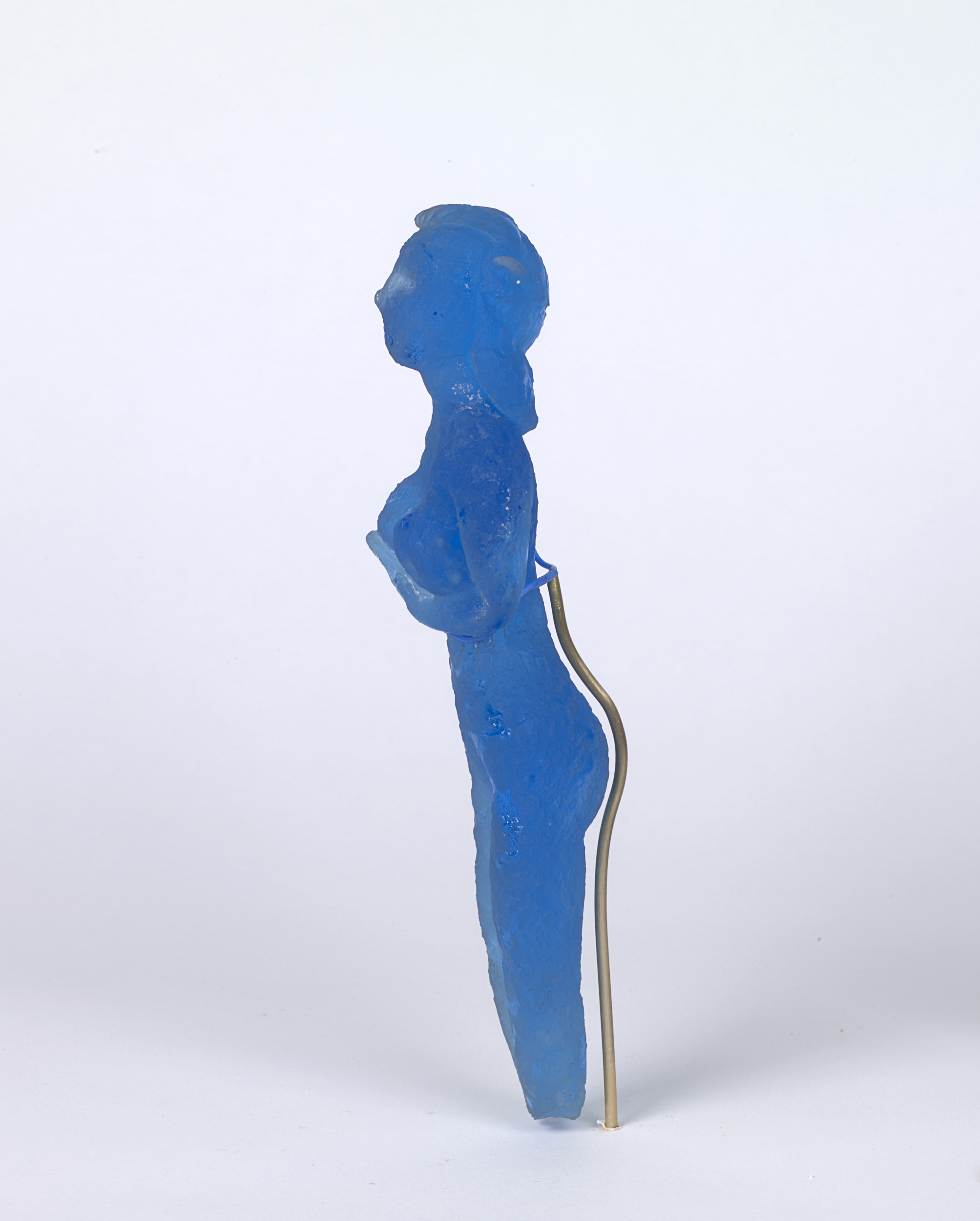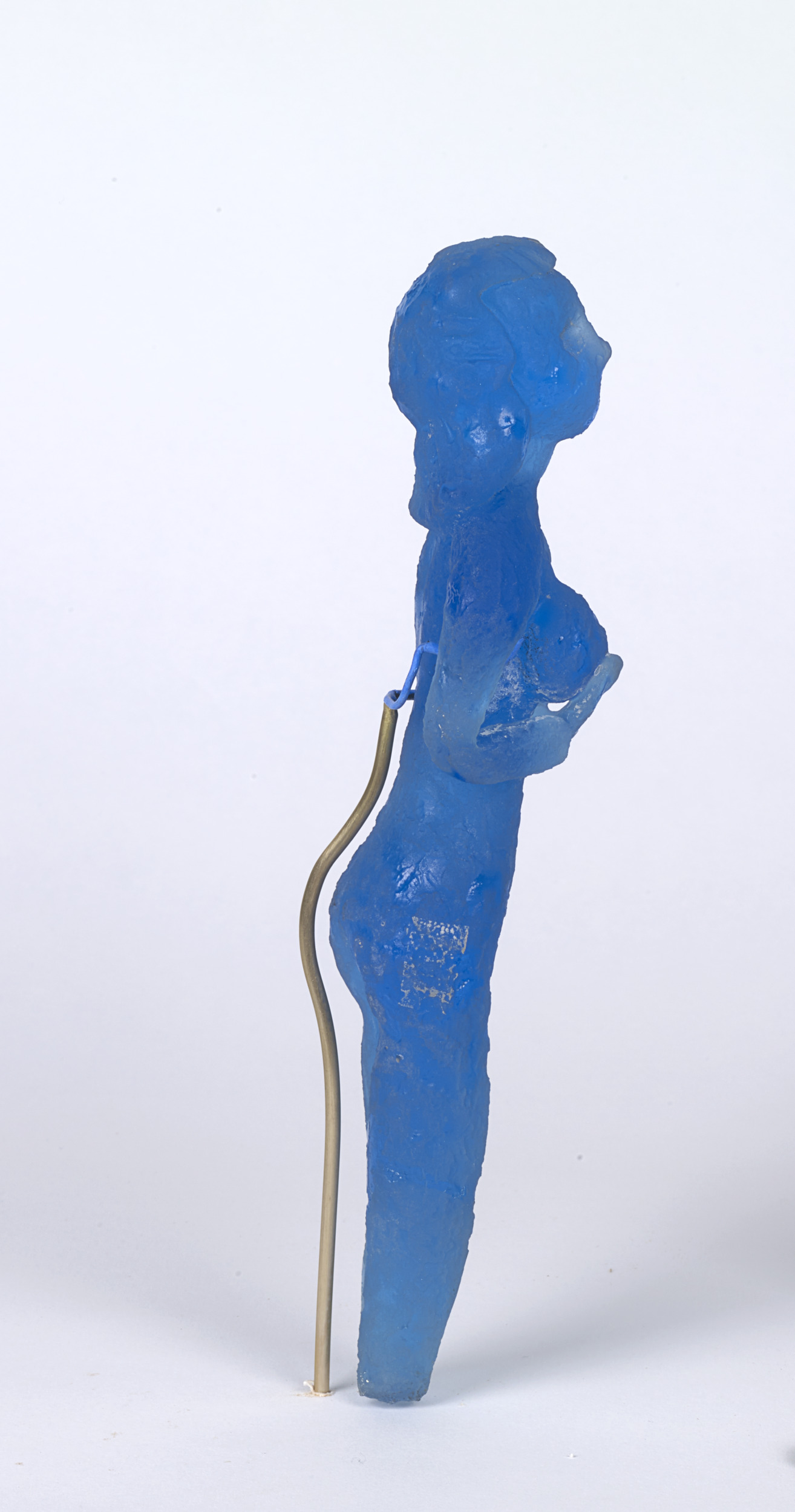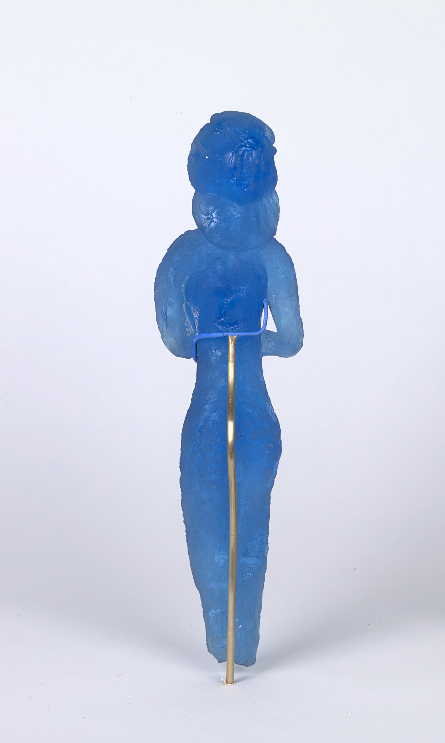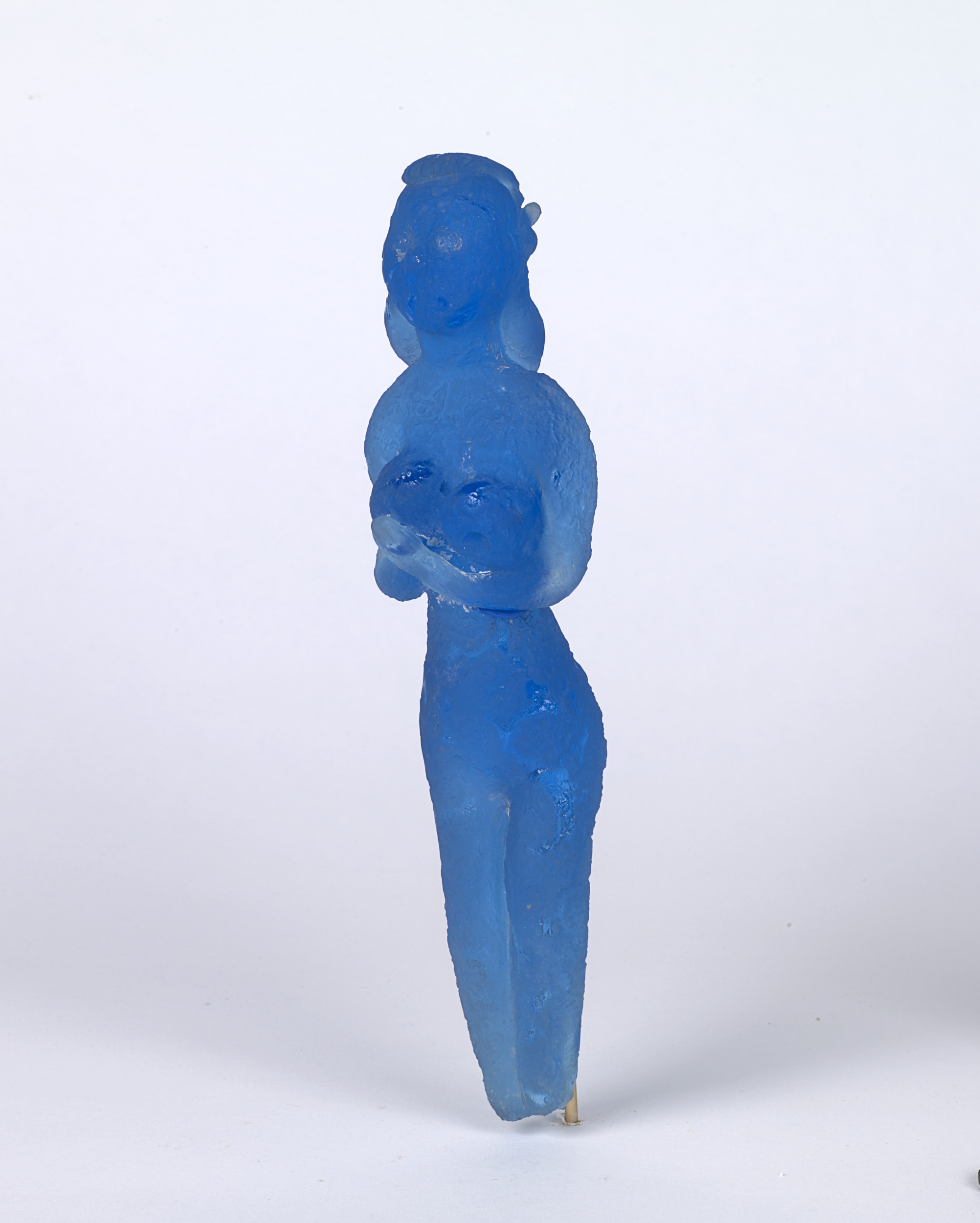 Mythological creatures appear throughout Pablo Picasso’s body of work, and in the mid-1940s he created a series of fourteen small clay sculptures depicting nymphs and satyrs sitting, standing, and playing instruments. The works were then cast in bronze and, later, made in ceramic. In the mid-1960s, he revisited the motif and transposed the playful figures into cast blue glass in collaboration with master glassmaker Egidio Costantini (Italian, 1912–2007). Picasso was attracted to these characters’ playfulness, and they served as poignant symbols within his personal iconography. One of the satyr figures here is said to be a self-portrait of the artist.