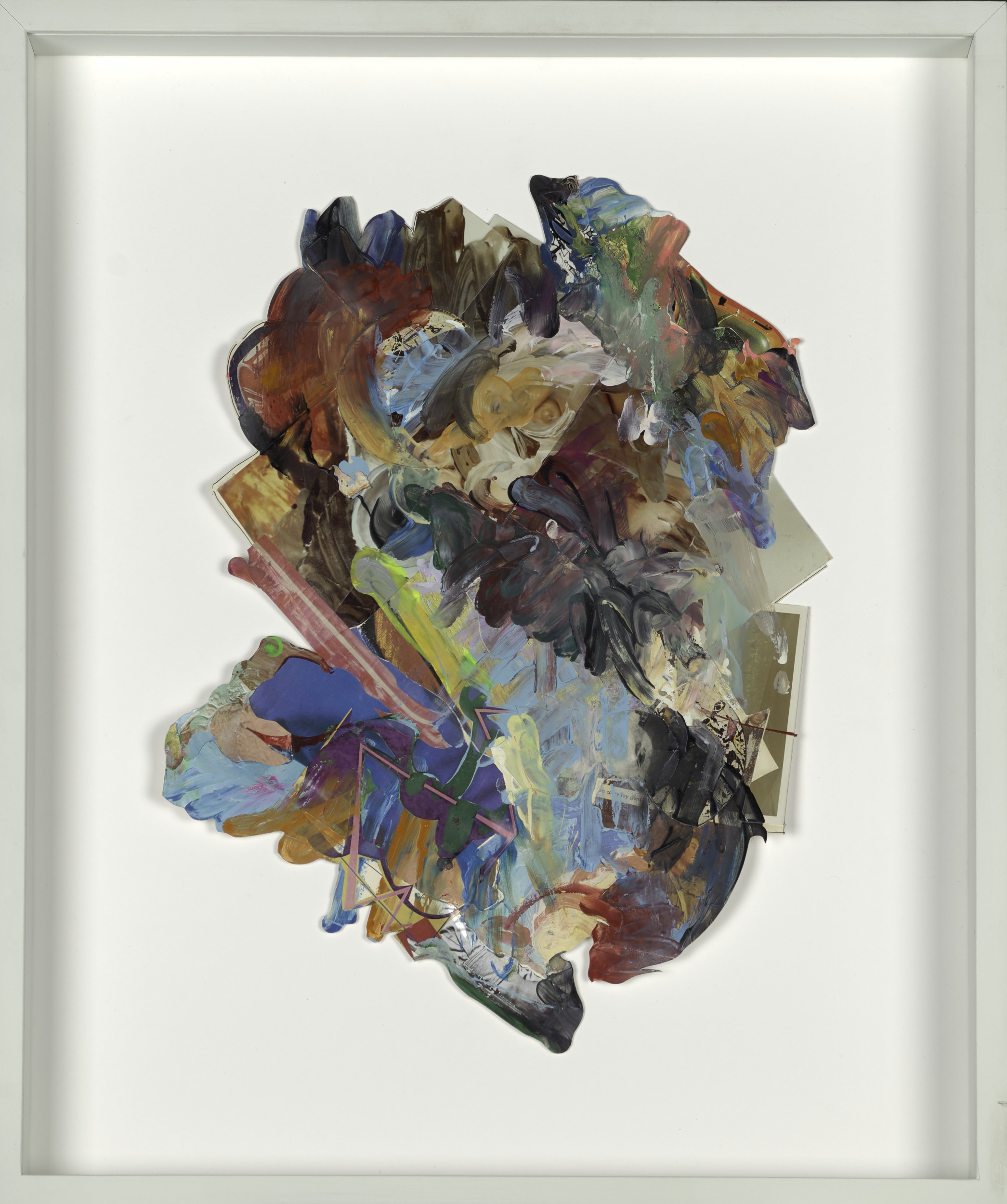 enamel and paper collage on paper