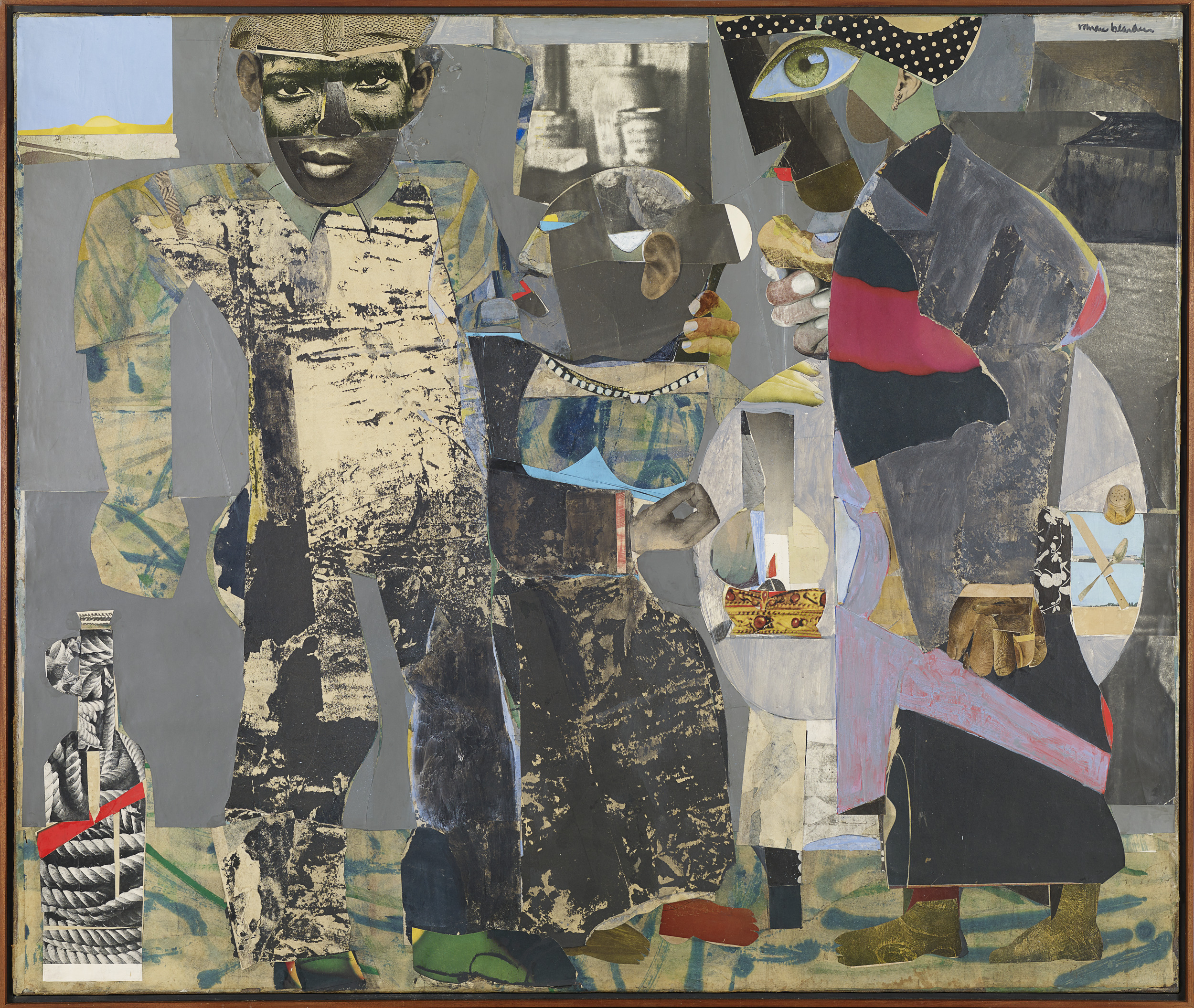 Amid the political turmoil of the 1960s and after working several decades as a painter, Romare Bearden began to cut, tear, and reassemble found images into visually powerful explorations of themes ranging from Harlem and jazz to the rural South and spirituality. This work is based on the biblical parable of the prodigal son. In the account, a father divides his estate between his two sons. While one stays and helps run the family farm, the other leaves, squanders his share, and is ultimately forced to return home penniless but repentant. Rather than turning him away, his father welcomes him with open arms. However, in Bearden’s version, he is greeted by two women amid a sea of layered patterns and forms. Bearden also added another element: a candle that seems to float between the two female figures. This detail possibly refers to the early American tradition of placing a candle in the window when a member of the family was away as a token of love, hope, and faith, but also as a beacon of light. About his interpretation of this story, the artist has said, “The Prodigal Son has left North Carolina, gotten into bad company and has come back to the ‘old folks,’ his home, where, as Robert Frost says, when no one else wants you, they got to take you in.”