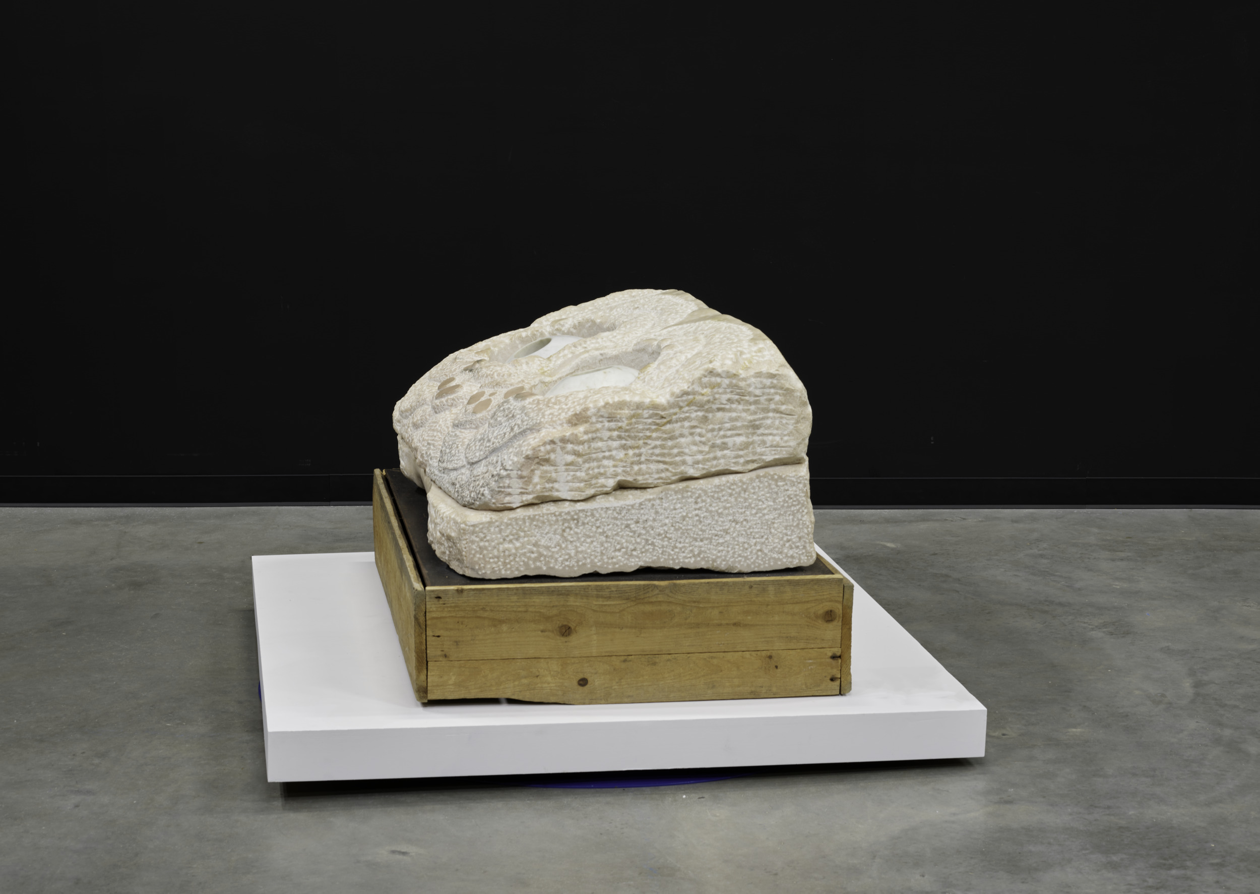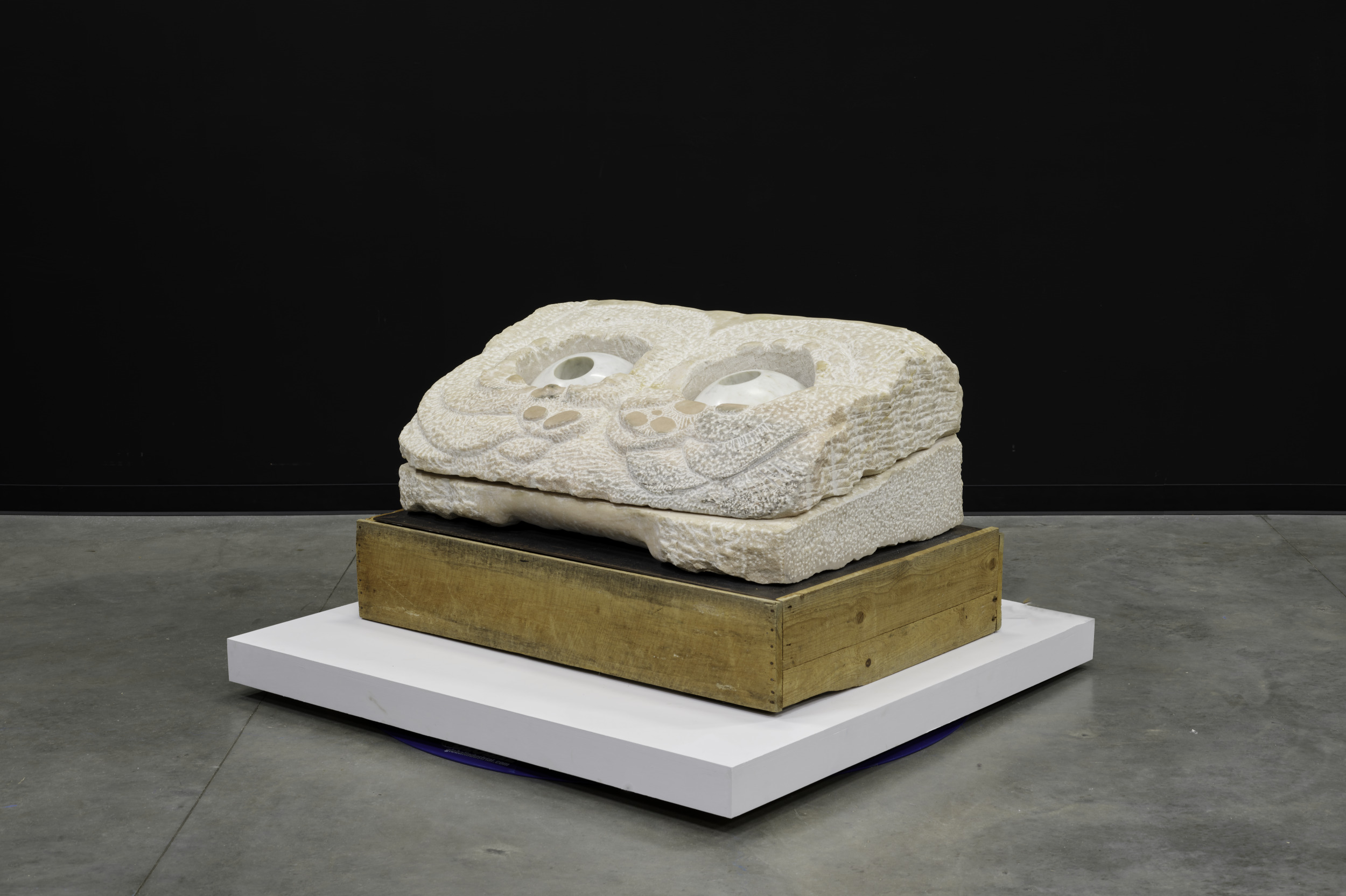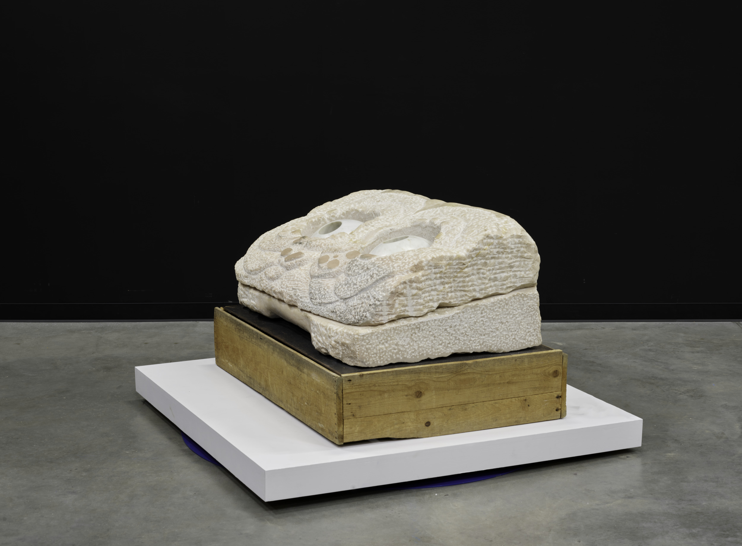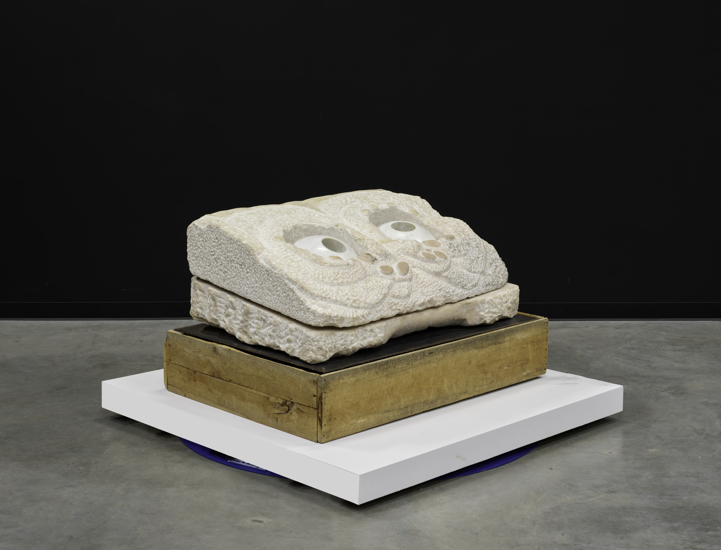 In this sculpture, the white marble “eyeballs” are not integrally connected to the pink slab. If the work were lifted, they would roll away. For the artist, this instability reflected the potential of losing control of one’s emotions when communicating through the eyes. Bourgeois chose pink marble not only because it recalls a flesh tone but also because she found the color seductive and feminine. She further worked the marble surface to create multiple indentations that represent life’s inevitable difficulties and their often imperfect resolutions.