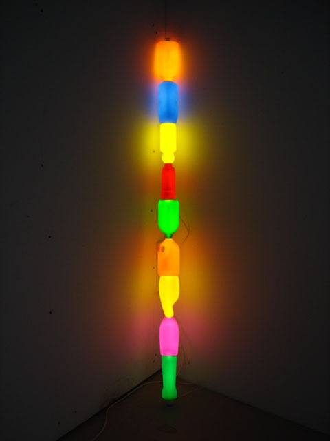plastic bottles and fluorescent lamp