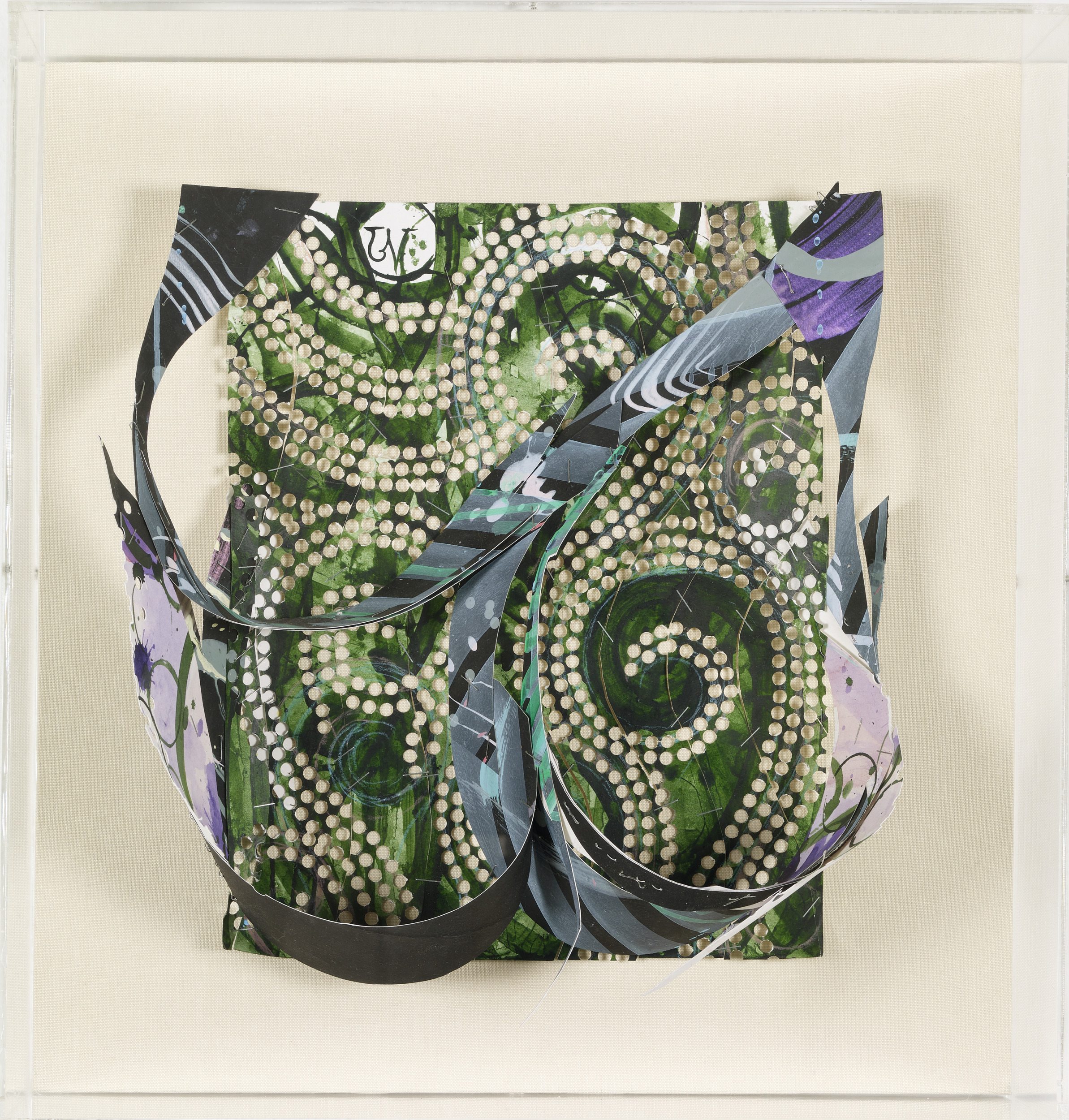 Tam Van Tran blurs the boundaries between painting, drawing, and sculptural practices by merging traditional materials—such as canvas, paper, and paint—with decidedly less conventional ones—including algae, beet juice, eggshells, spirulina, and staples. His distinctive working methods result in hand-molded abstractions that resemble aerial maps when viewed from afar and are layered with nuances that reveal the artist’s hand. He begins by painting and drawing an image on paper that he then manipulates into a three-dimensional object by cutting, hole-punching, stapling, and other processes. Tran’s work is full of dualities—abstraction and representation, natural and manmade, terrestrial and otherworldly. Through his imagery the artist, who is a devout Buddhist, explores the complexity of our universe, aiming to reconcile East and West by pursuing meditative mindfulness and beauty alongside darker sensibilities of violence and aggression.