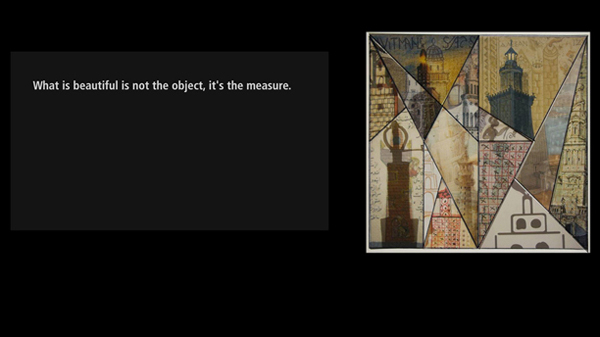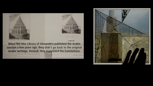 Measuring the Circle belongs to series of works that Ellie Ga based on the destroyed Pharos Lighthouse of Alexandria, Egypt. Built in the 3rd century BCE, the lighthouse stood for centuries as a remarkable symbol of technological advancement and one of the Seven Wonders of the Ancient World. On the left side of this video, Ga interweaves materials relating to the lighthouse dating back to antiquity with footage documenting her research process. On the right side, she plays an ancient Greek geometry game with cut-outs of these images, creating a visual metaphor for her attempt to fit together pieces of the lighthouse’s story. By juxtaposing story-telling and research, documentary and fiction, and personal memory and historical accounts, Ga reveals how our understanding of the present is shaped by the many ways we attempt to remember and understand the past.