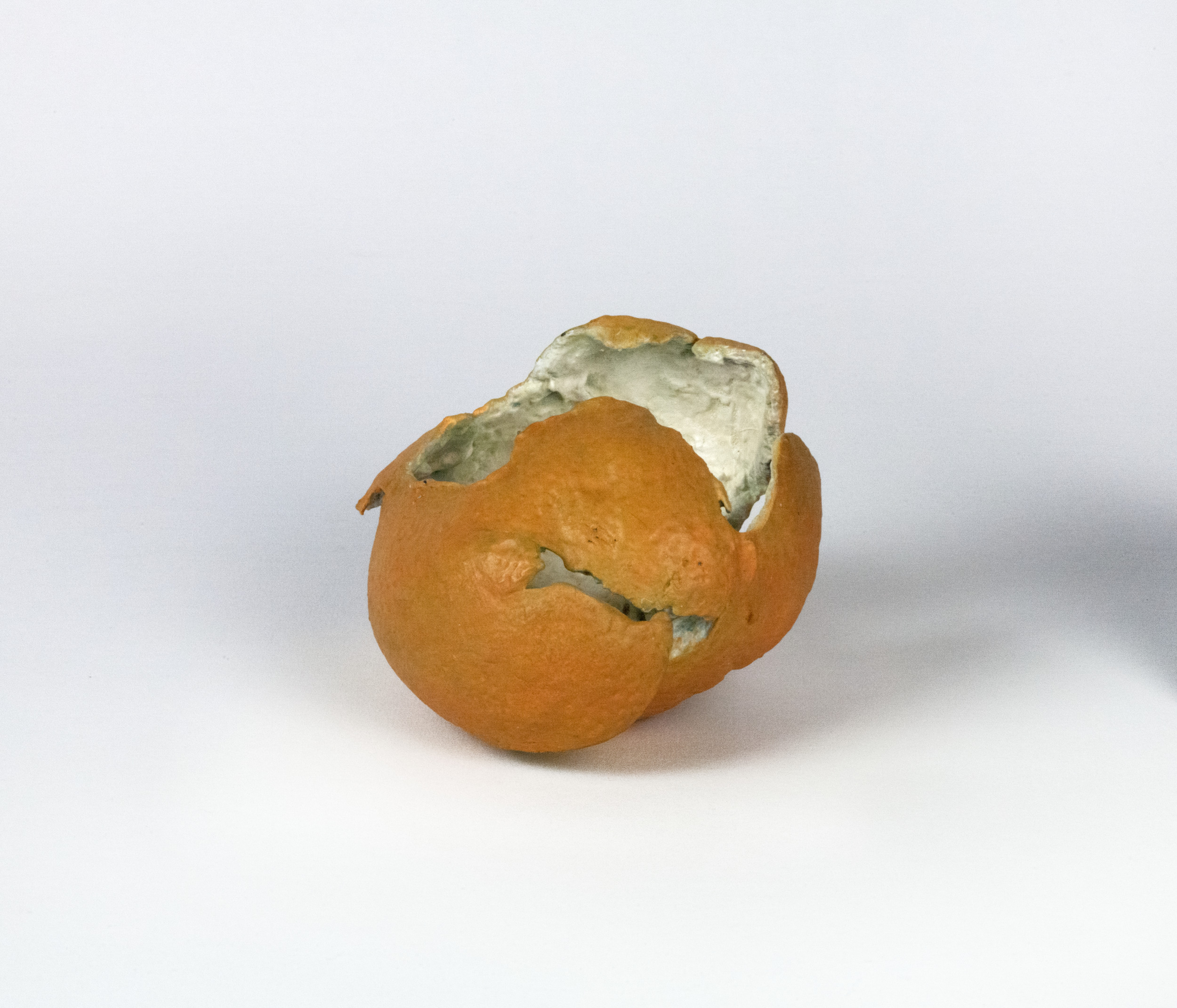 David Adamo’s sculptural practice involves contemplating small, everyday objects and the surreal patterns and organic shapes that result from natural processes. Works like Untitled (corn) and Untitled (orange peel) are reminders that sculpture is often an art of removal rather than accretion: the half-eaten ear of corn and castaway orange peel evoke the processes of carving and scraping from stone or wood. Adamo’s hyperrealistic sculptures, which he makes by casting real objects of seemingly little importance, blur the line between reality and illusion. The uncanny resemblance between the works and their sources may cause viewers to distrust their eyes.
