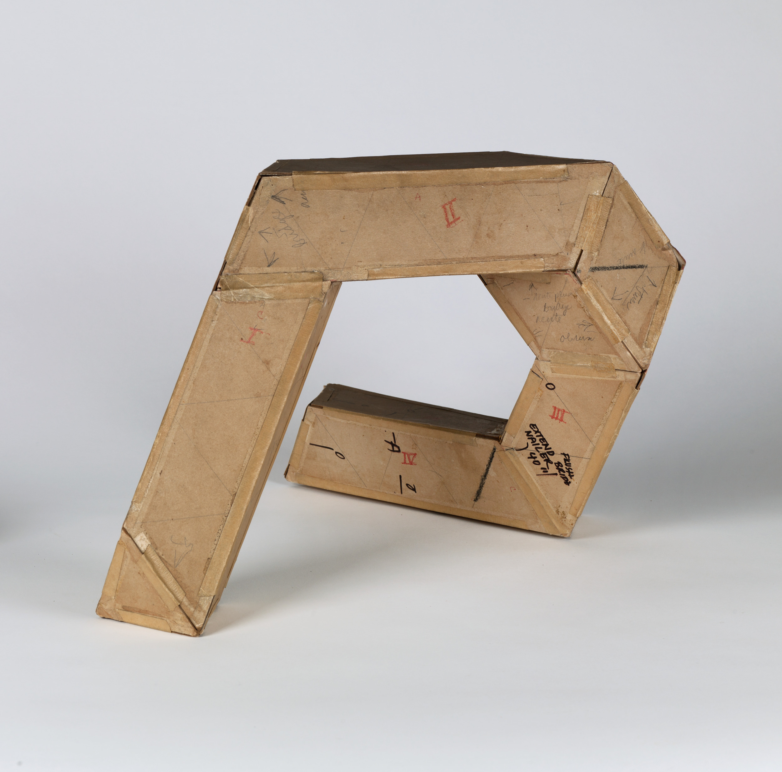 ink and pencil on cardboard, masking tape