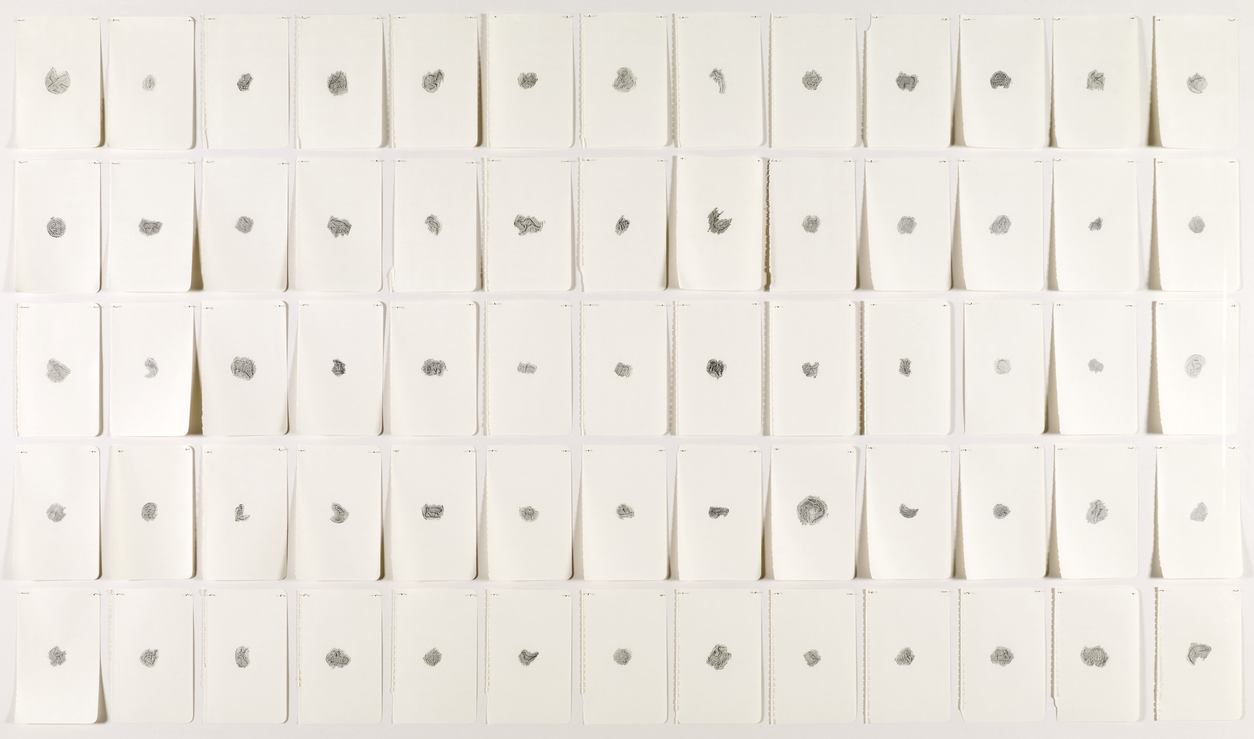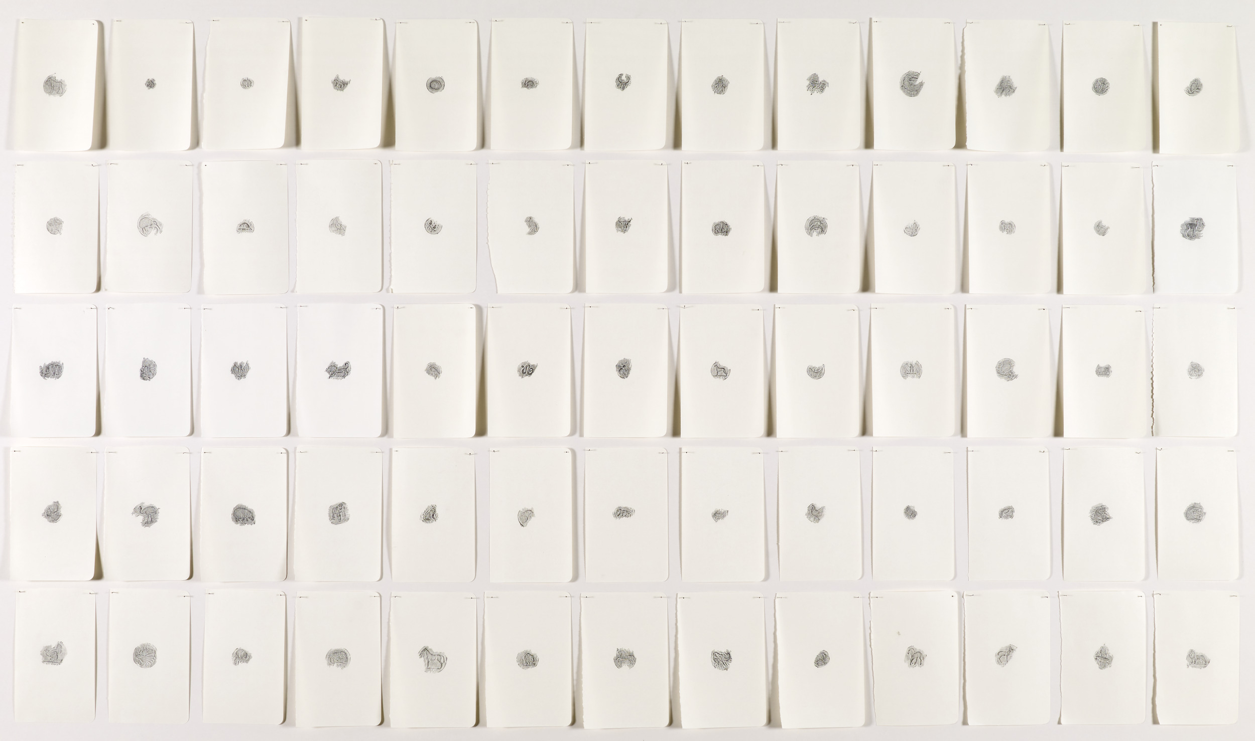 Throughout her work, Milena Bonilla creates a narrative thread linking the economy, politics, and world geography to the discord between nature and material culture. Bonilla proposes new ways to chart, and therefore address, such issues. To create Money, Bonilla made 260 rubbings off the surfaces of coins from developing nations on which plants or animals are illustrated. She then used these drawings to create a series of “maps” where nations are not demarcated by territorial boundaries but, instead, are represented by their native species. Her process recalls the aesthetics of historic cartography, in which regions were often correlated with drawings of their native flora and fauna. Here, countries are identified by the natural resources they have chosen to associate with monetary value. Bonilla’s decision to use coins conveys the threat that consumerist culture poses to our ecological resources. Hers is an imaginary system where nature rises above flags or territorial borders. However, in order to read her work as a mapped interpretation of the world, you would need to be familiar with all the nations associated with the coins she employs—seemingly an intentionally impossible feat.