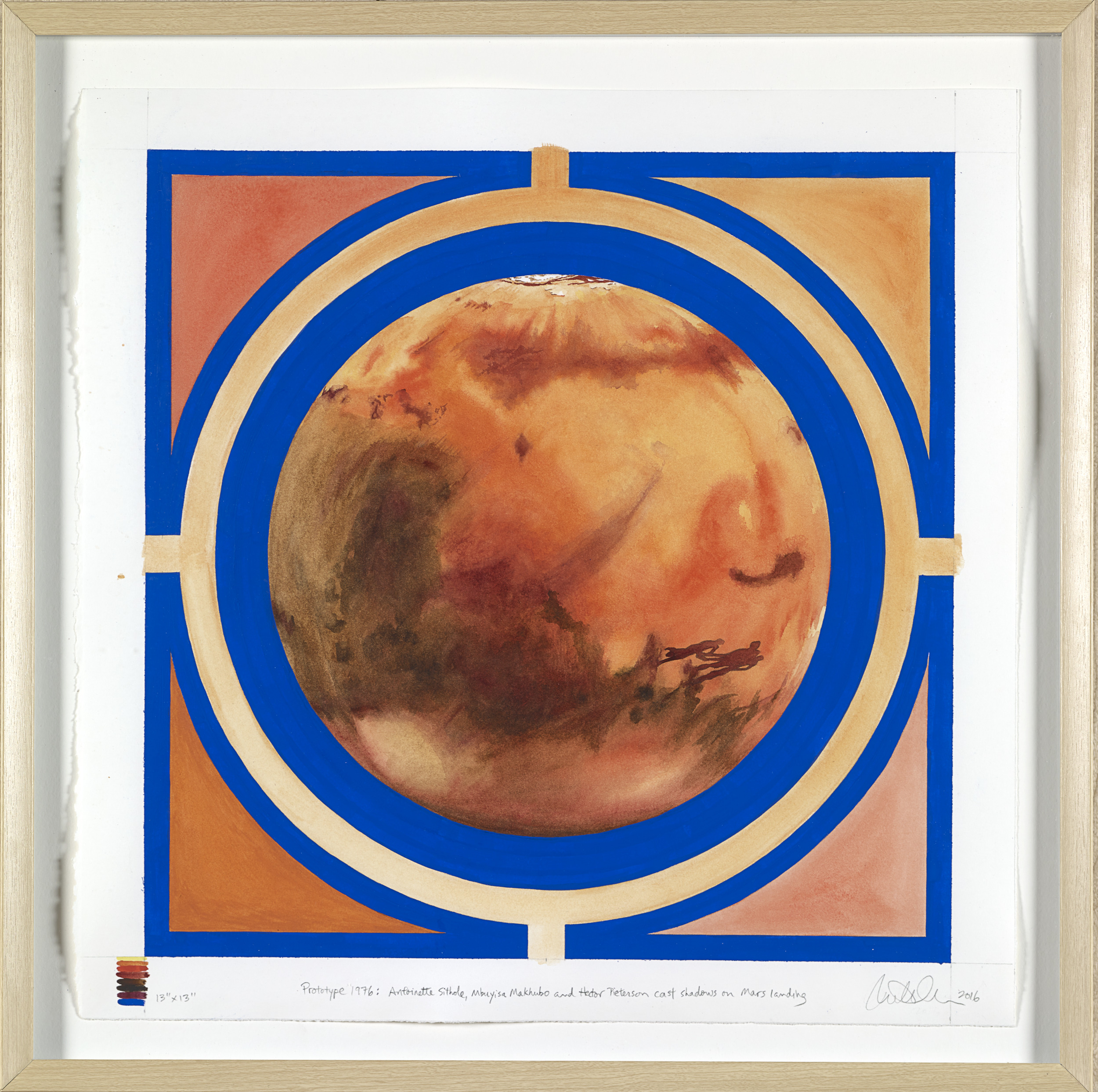 Prototype 1976: Antoinette Sithole, Mbuyisa Makhubo and Hector Pieterson cast shadows on Mars landing, 2016