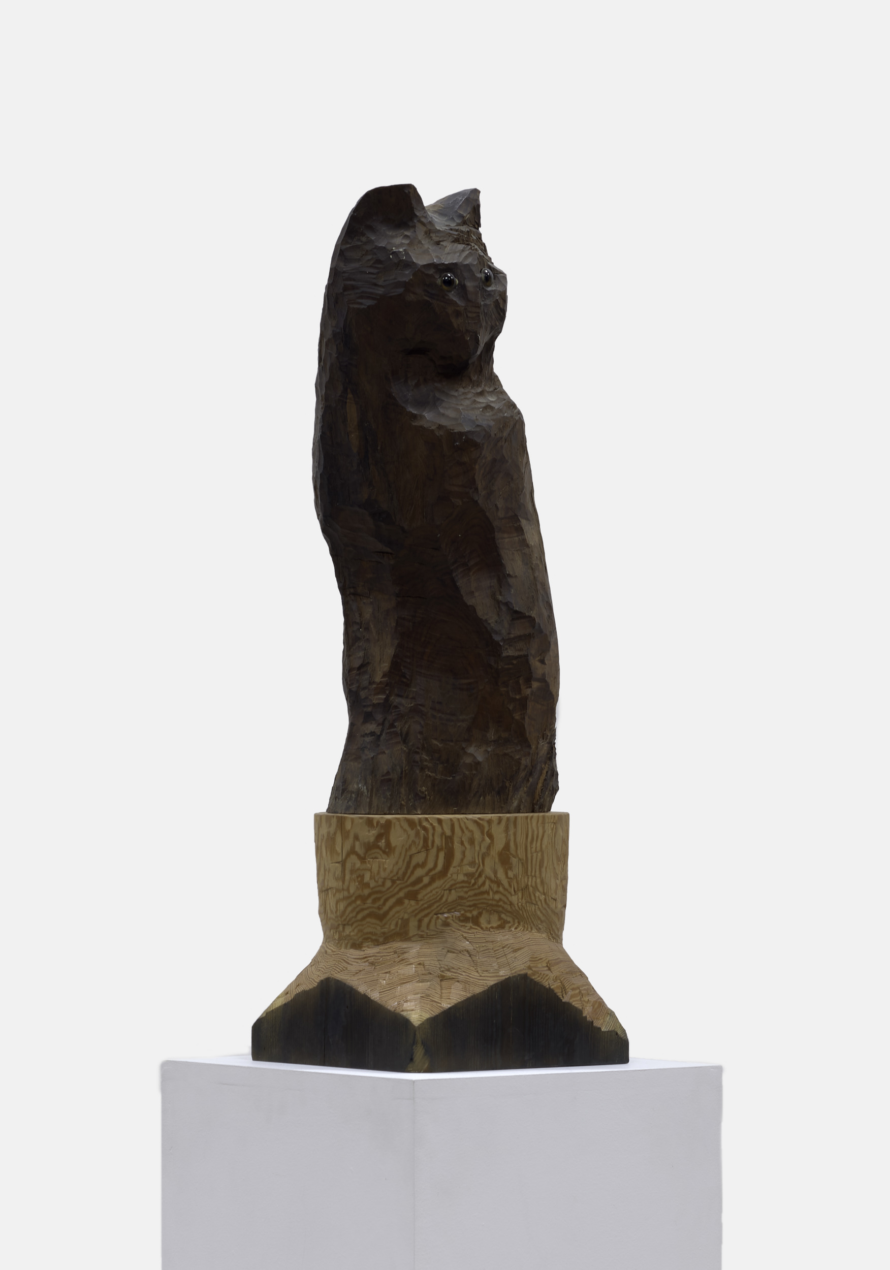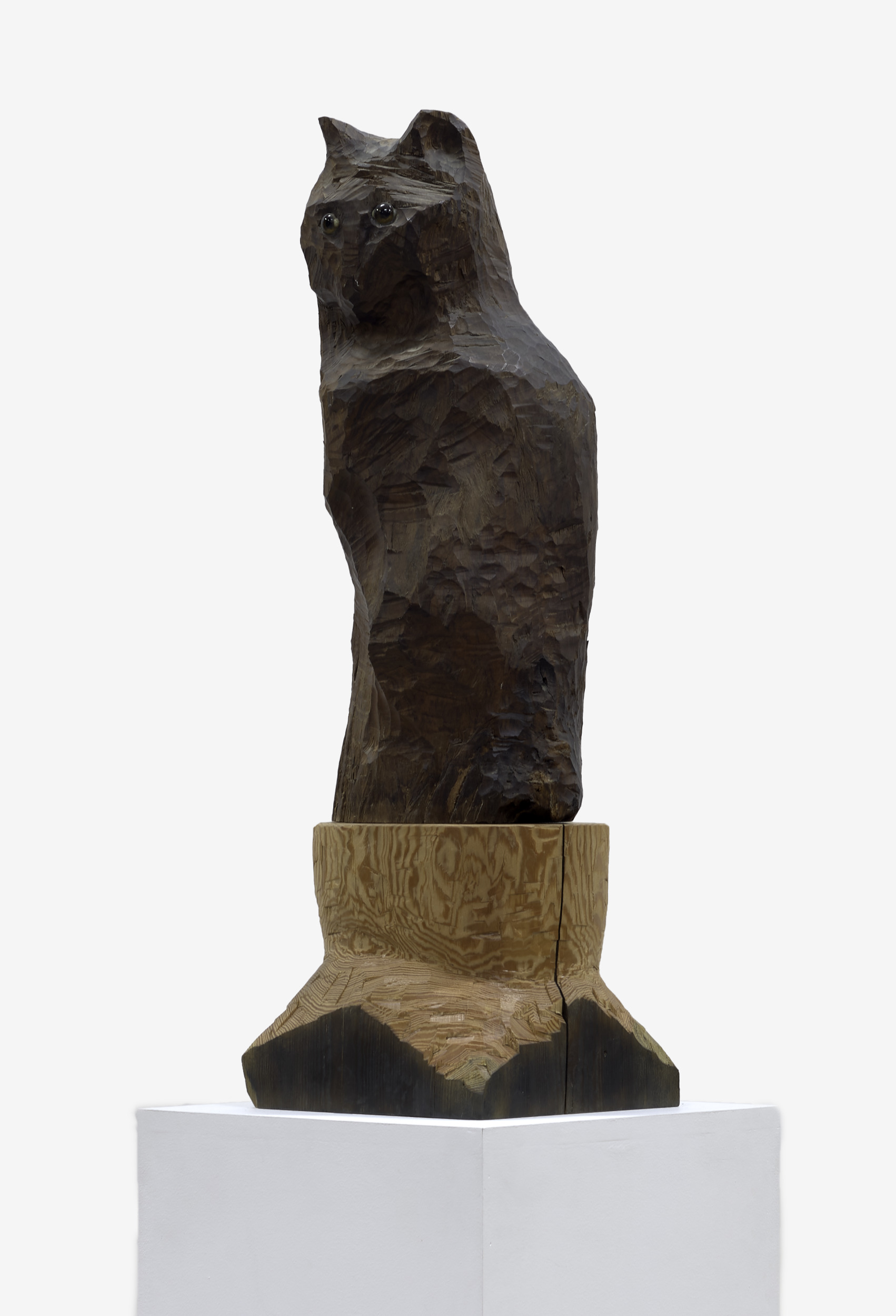 cocobolo wood, stain, and glass eyes