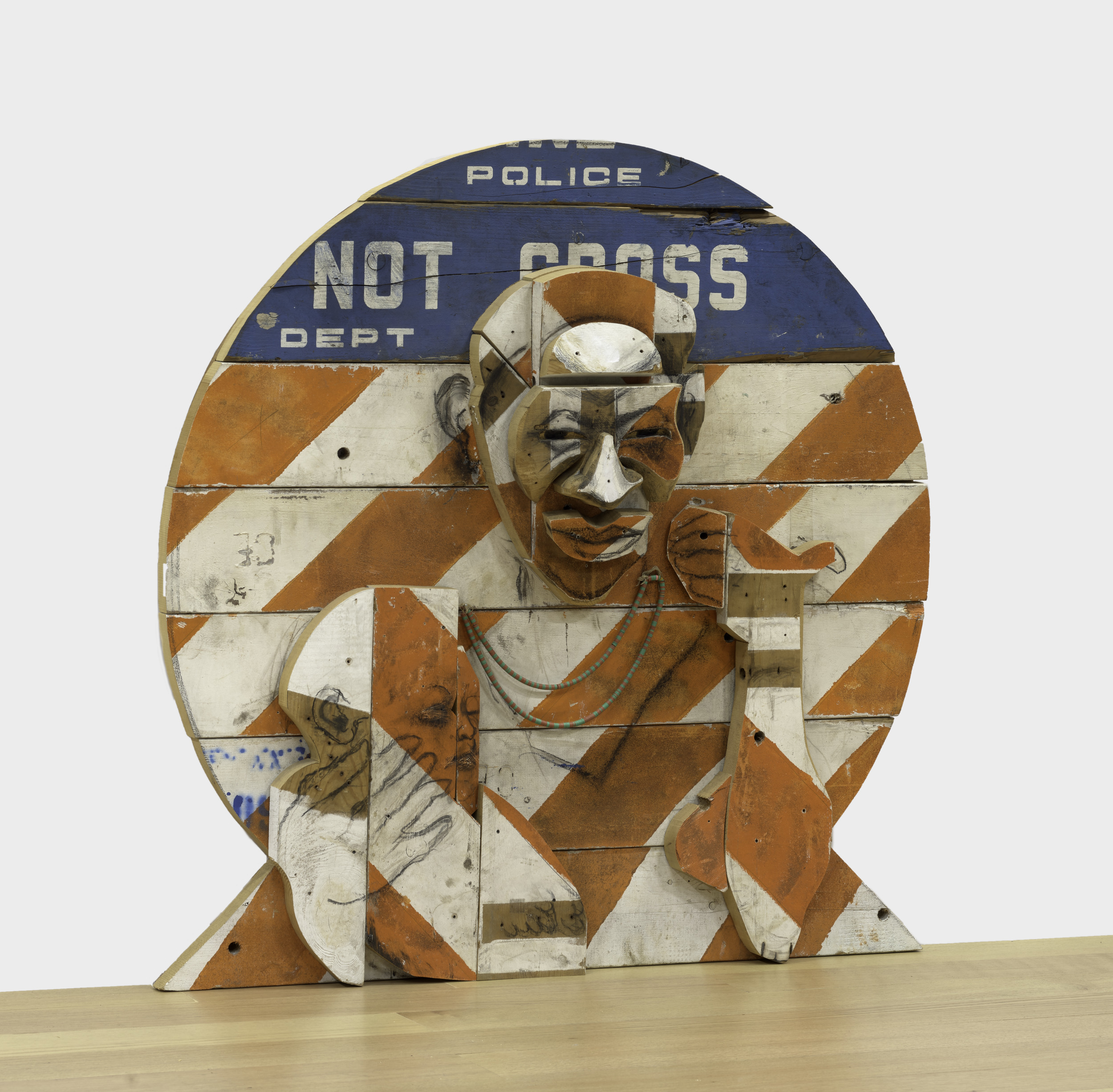 wood, paint, and charcoal
