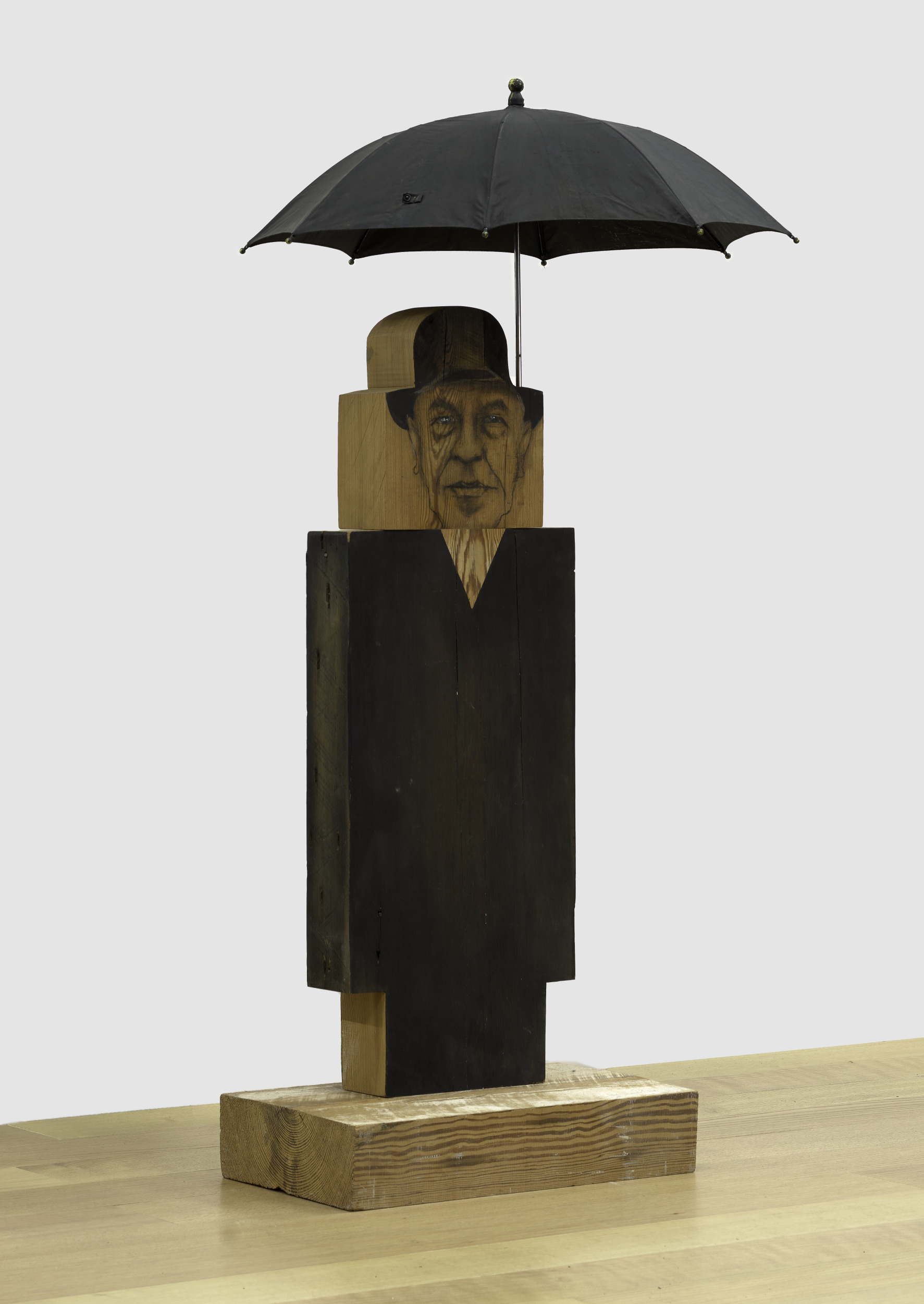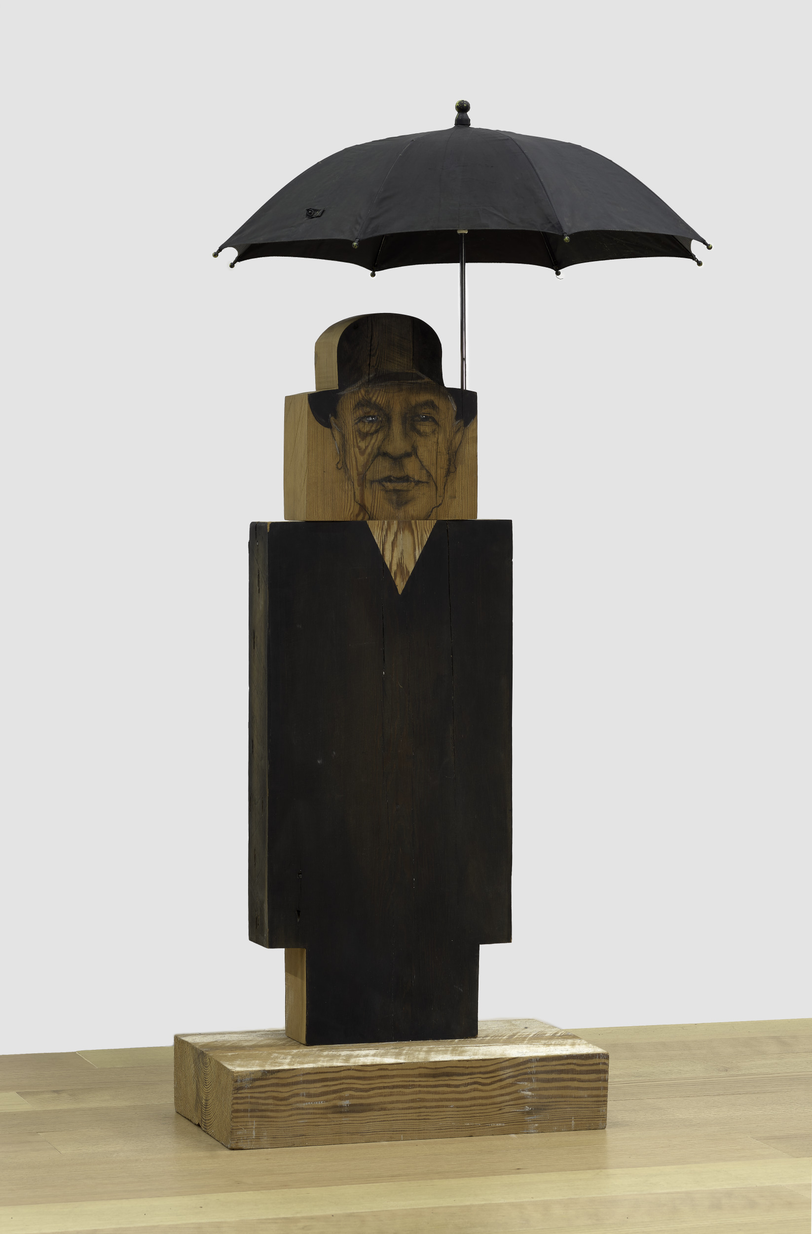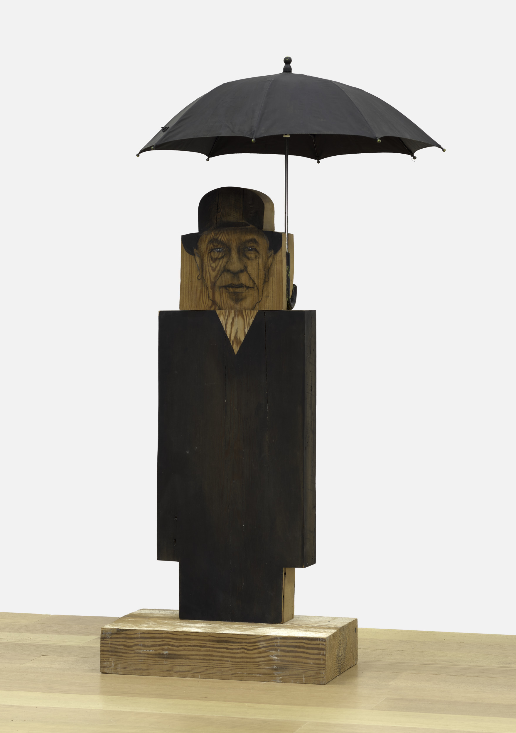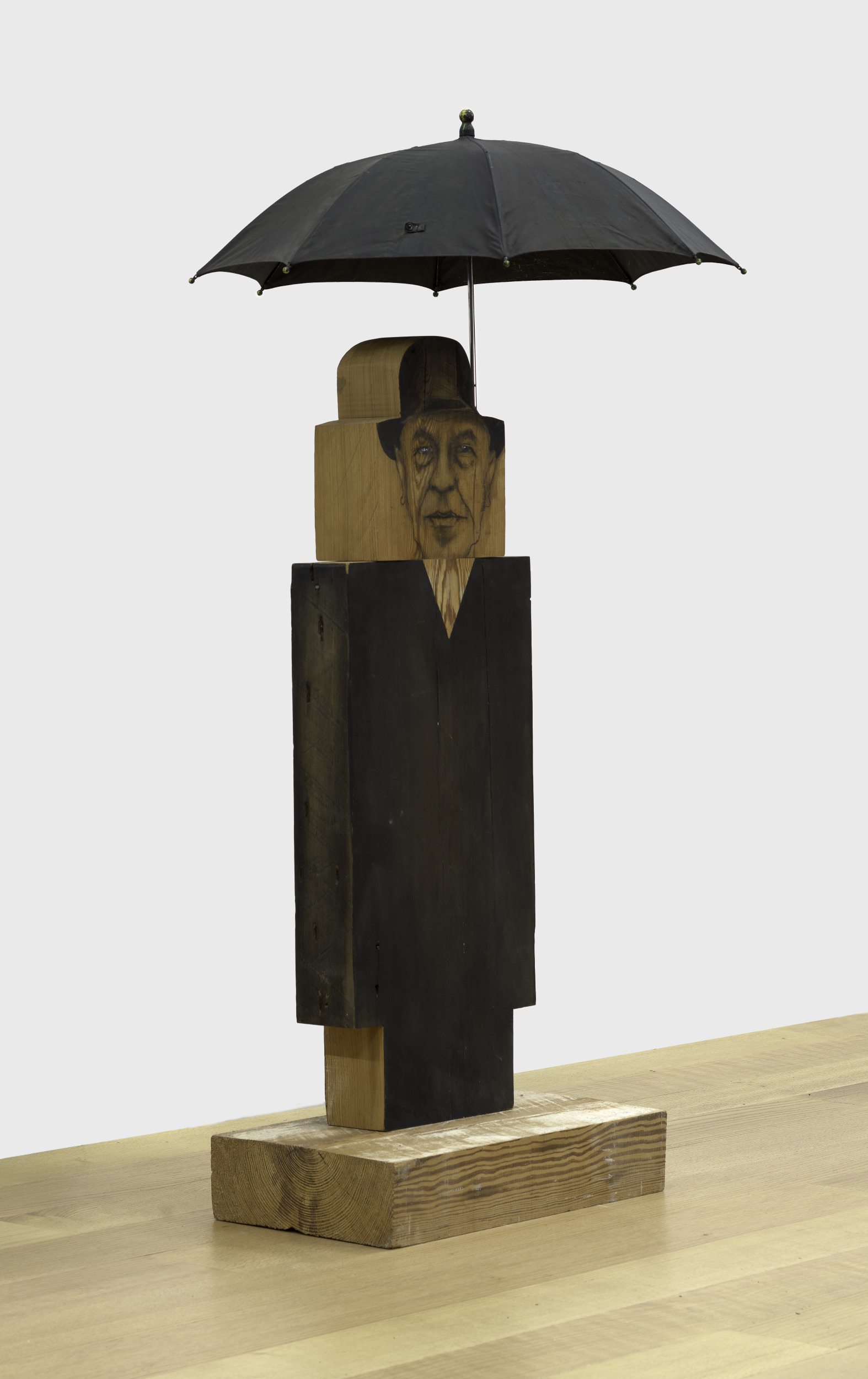oil, charcoal, wood, plaster, and umbrella