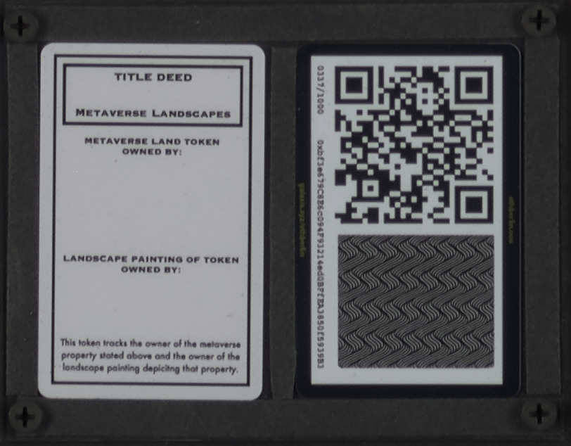 ETH paper wallet; dynamic ERC-721 NFT (on chain SVG); oil on canvas, wood, MDF, plexiglas, 1274 x 1224 x 62 mm (framed)