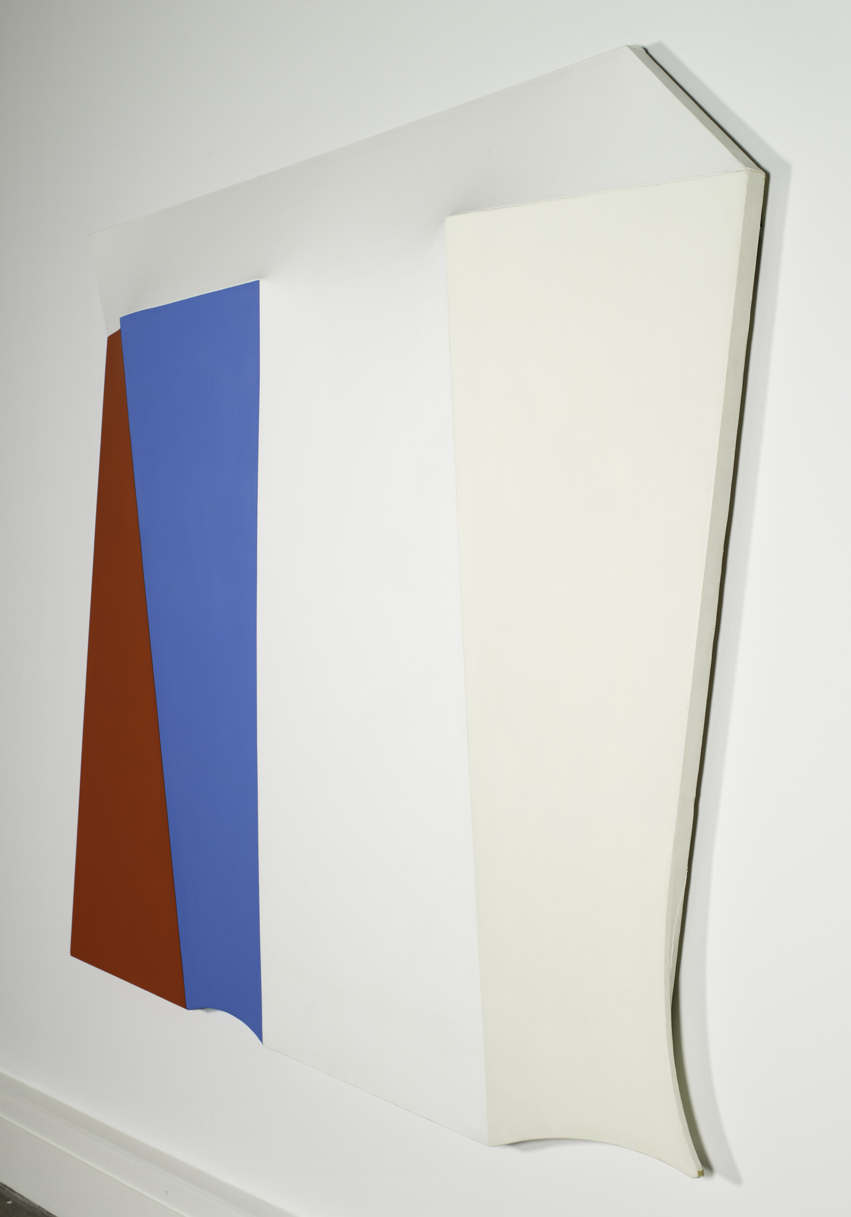 During the mid-1960s, Charles Hinman worked out of an abandoned sail-making loft located on the Coenties Slip in Lower Manhattan that he shared with James Rosenquist. It was during this time that Hinman began playing a significant role in redefining the physical shape of painting, seeking to push the canvas out from the wall. The artist was also greatly influenced by Ellsworth Kelly’s use of flat, contrasting colors. The protruding geometric and undulating forms in Acropolis allow it to function as a painting and a sculpture simultaneously. The artist’s travels to Greece may have influenced the composition and title of this work, which evoke the citadel of ancient Athens.