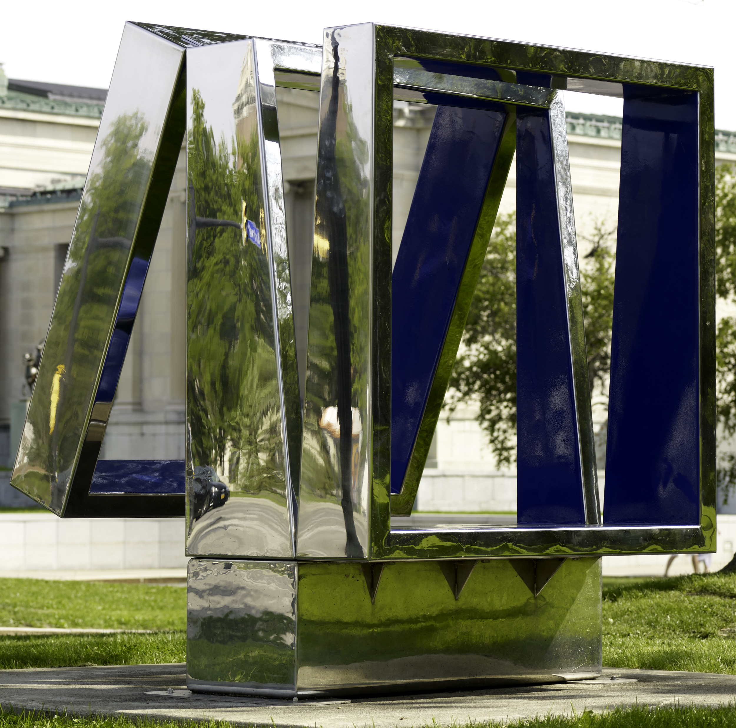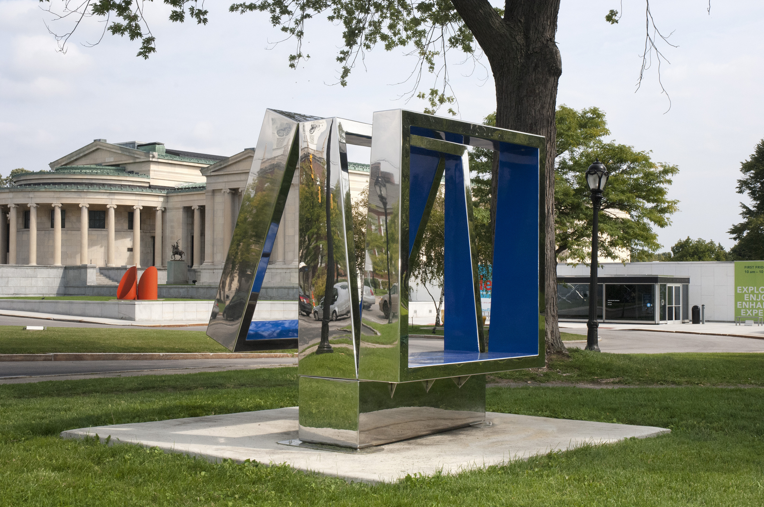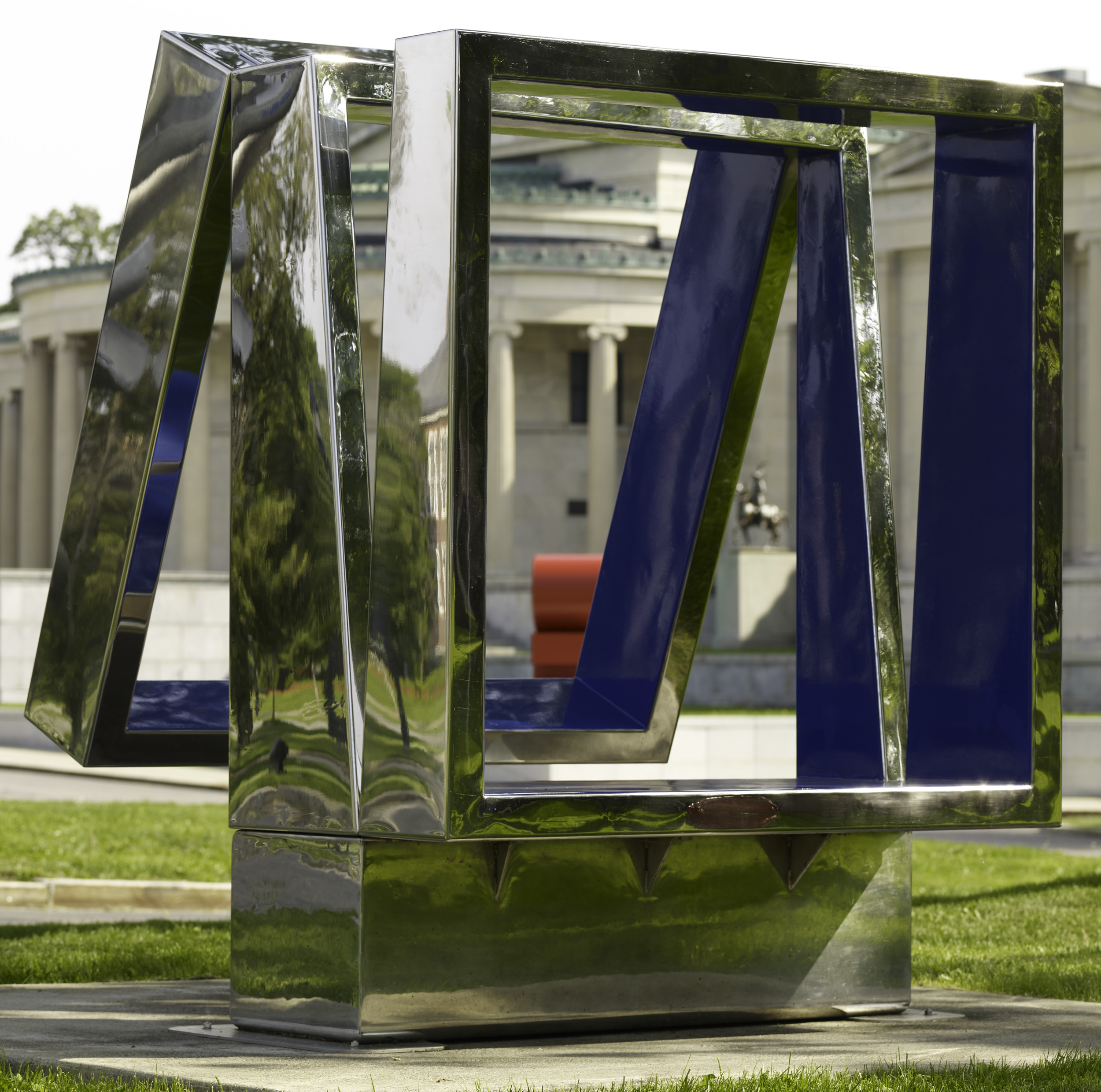 Beverly Pepper (American, 1922–2020). Zig-Zag, 1967. Stainless steel and baked enamel, 74 3/4 x 59 x 65 inches (189.9 x 149.9 x 165.1 cm). Collection Albright-Knox Art Gallery, Buffalo, New York; Gift of Seymour H. Knox, Jr., 1968 (K1968:10). © 1967 Beverly Pepper