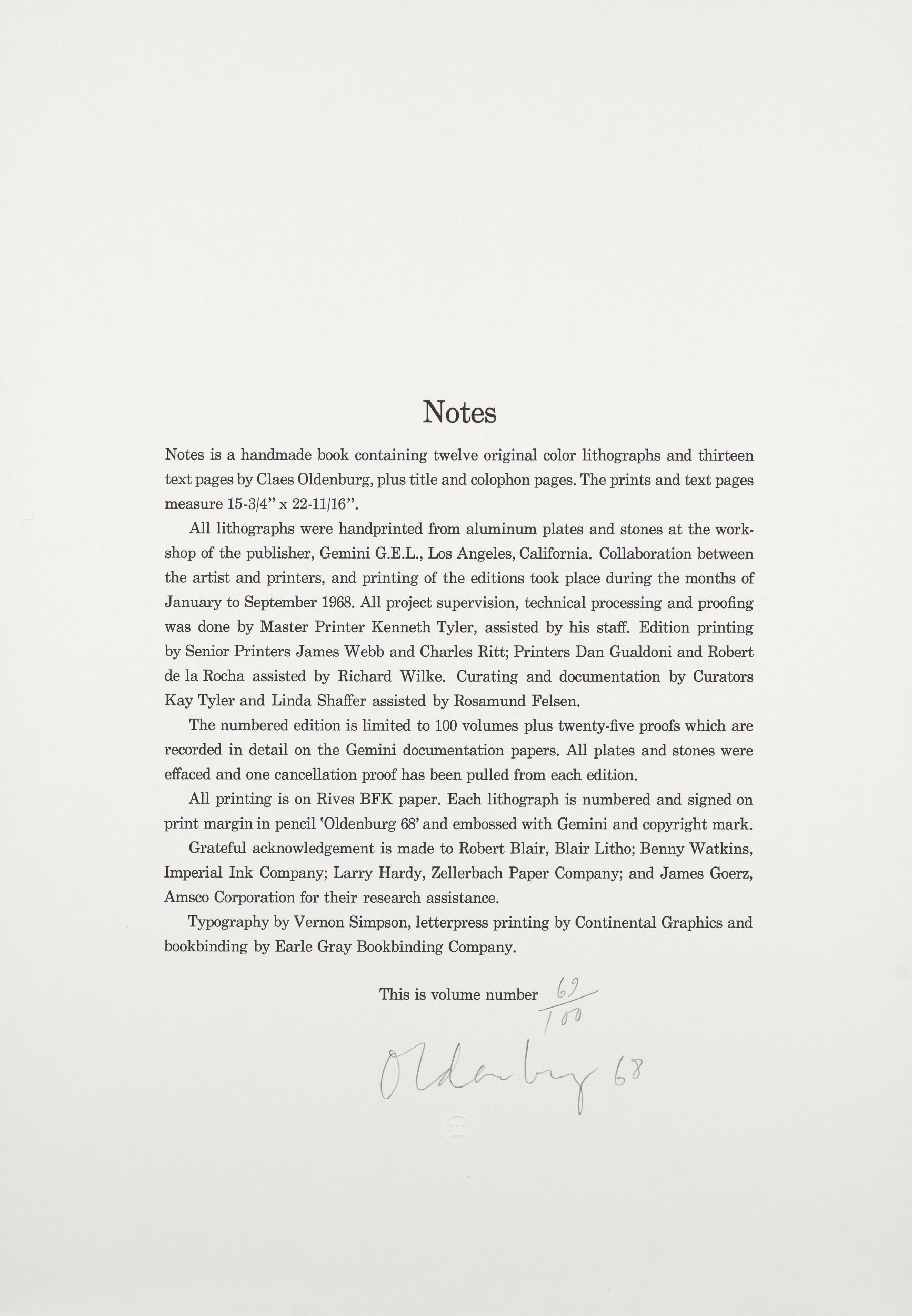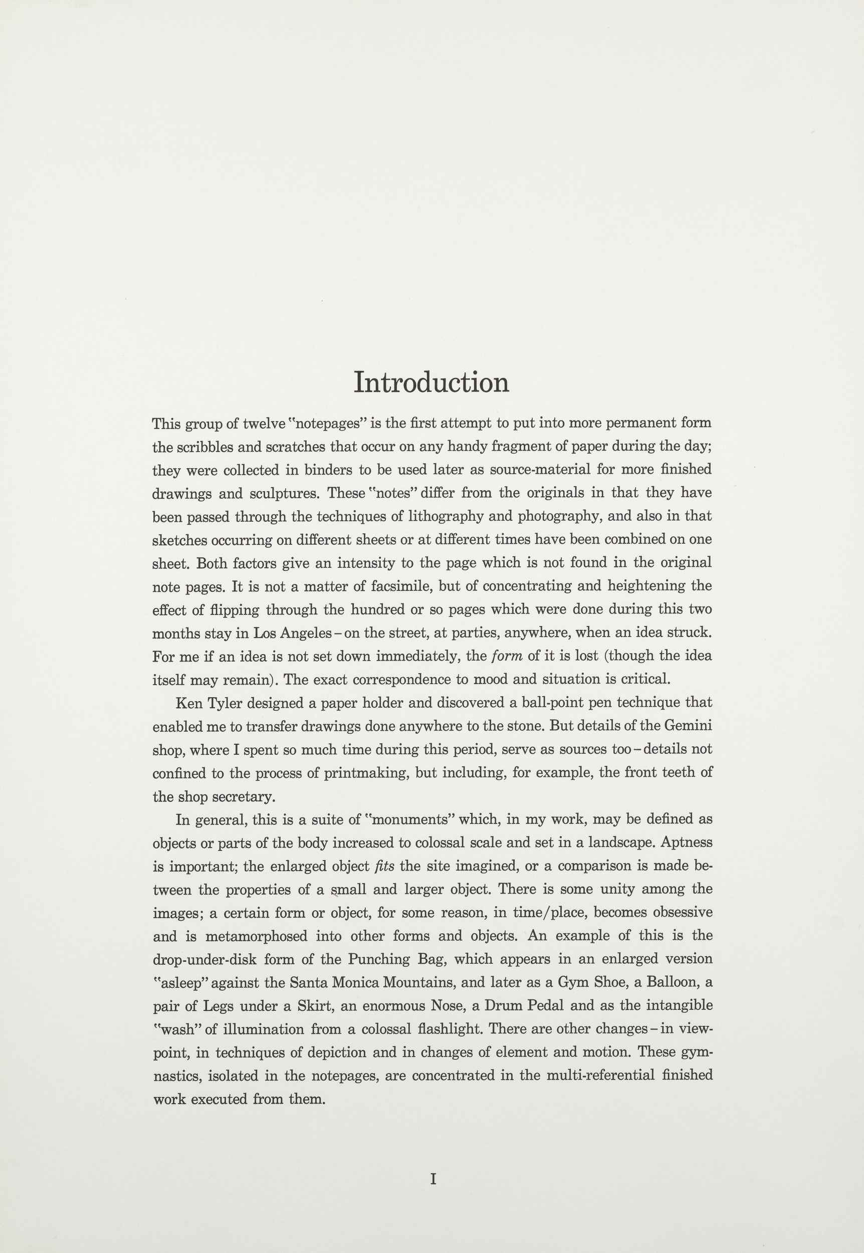 portfolio of twelve lithographs, with twelve companion text pages, a title page, a foreword by Barbara Rose, an introduction by the artist, and a colophon page