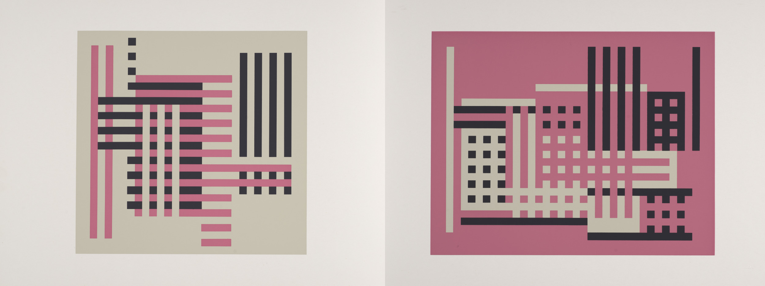two portfolios of thirty-three folders each, containing 127 total screen prints, plus 10 text pages
