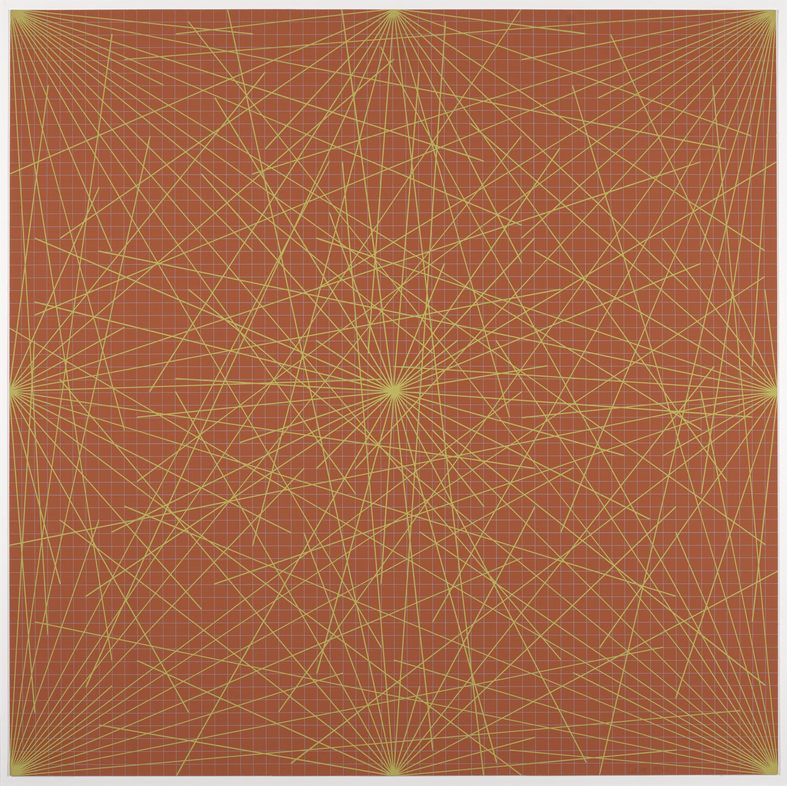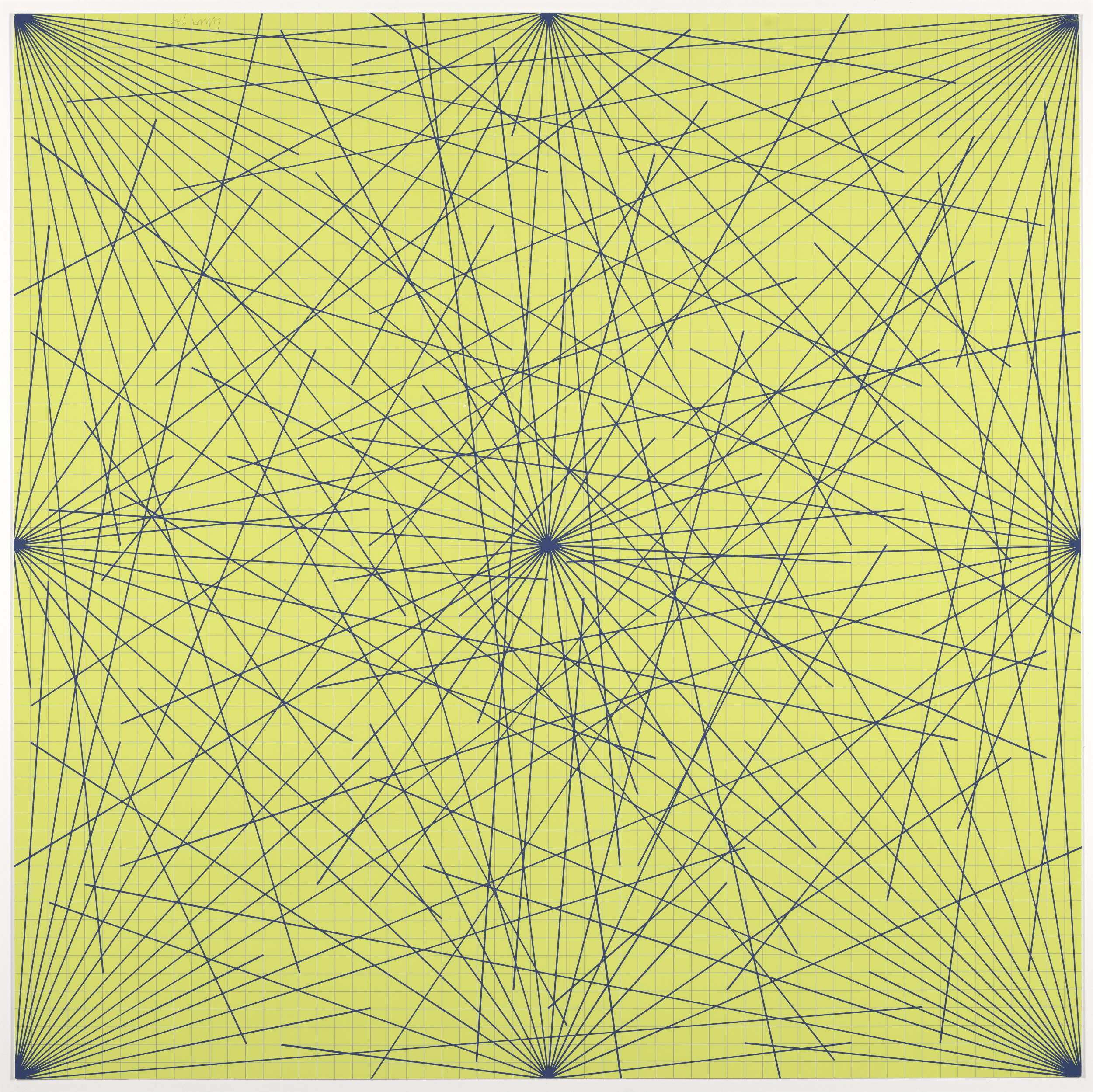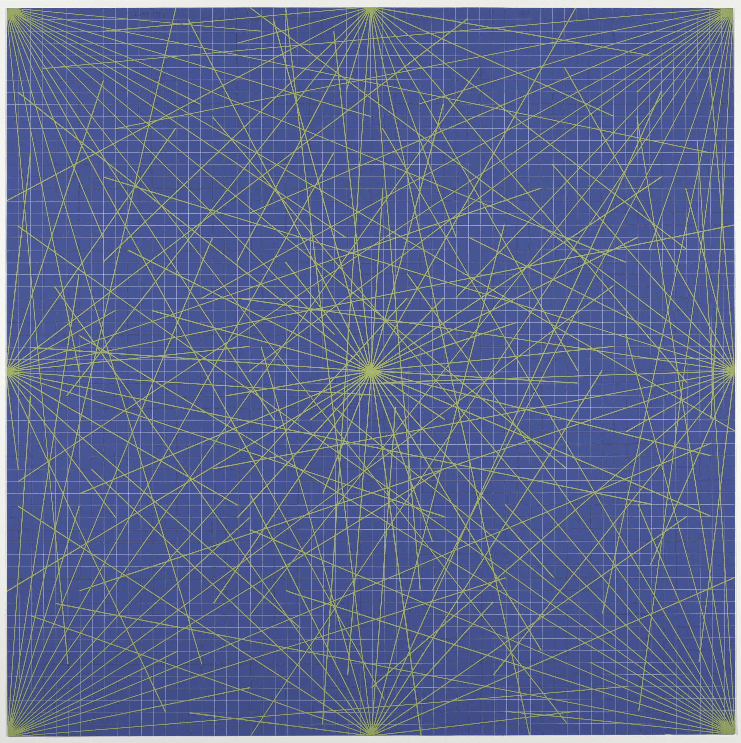 Lines in Color on Color From Corners Sides and Centers to Specific Points on a Grid, 1978