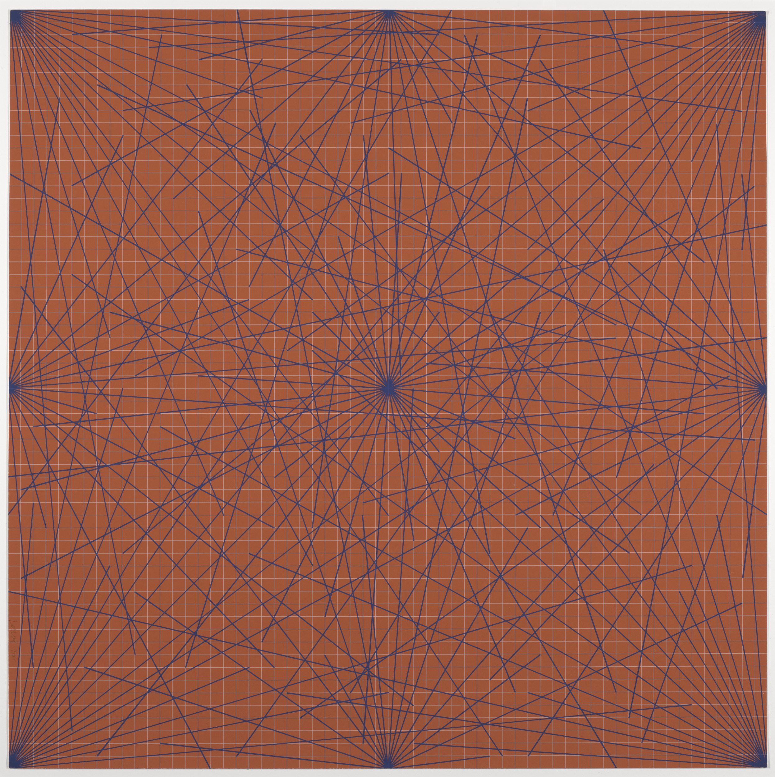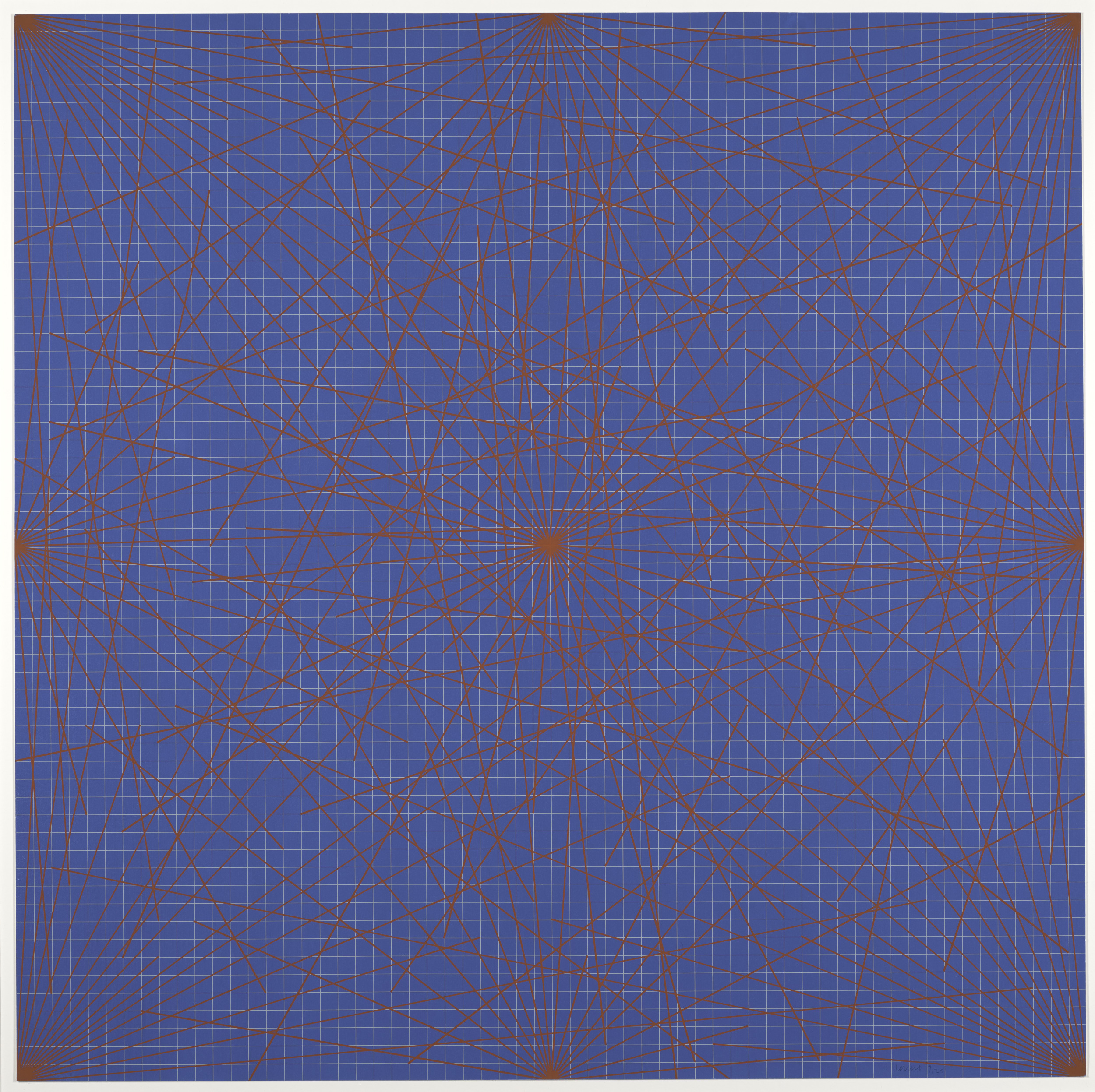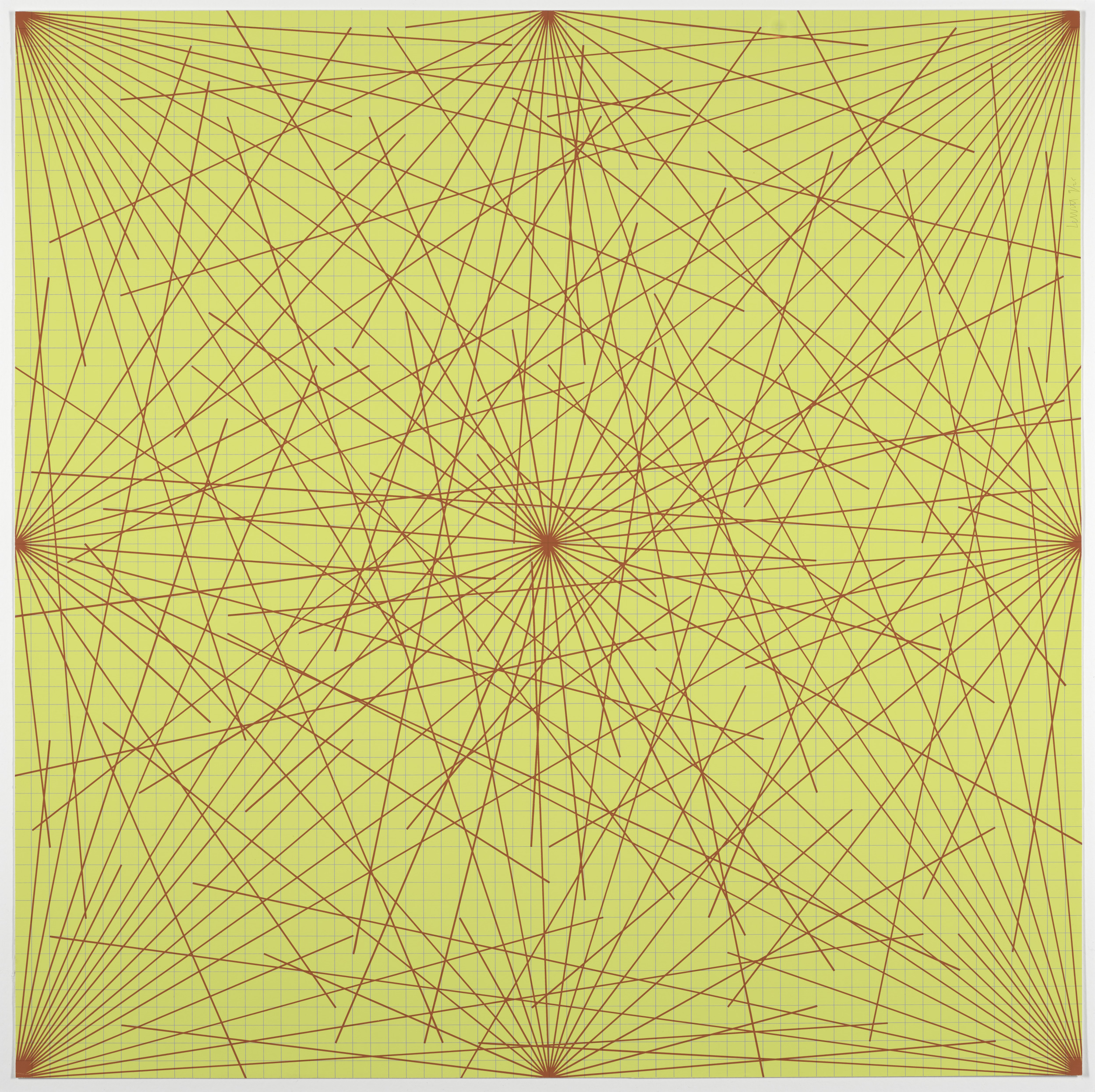 Lines in Color on Color From Corners Sides and Centers to Specific Points on a Grid, 1978