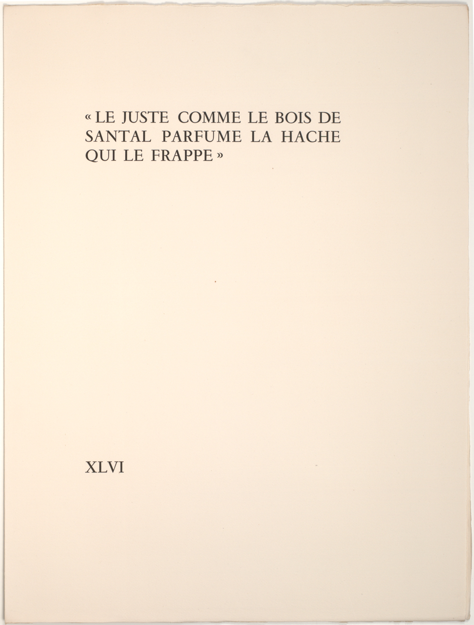 "Le juste, comme le bois de santal, parfume la hache qui le frappe" ("The righteous, like sandalwood, perfume the axe that falls on them") from the portfolio Miserere (Have Mercy), 1926 (published 1948)