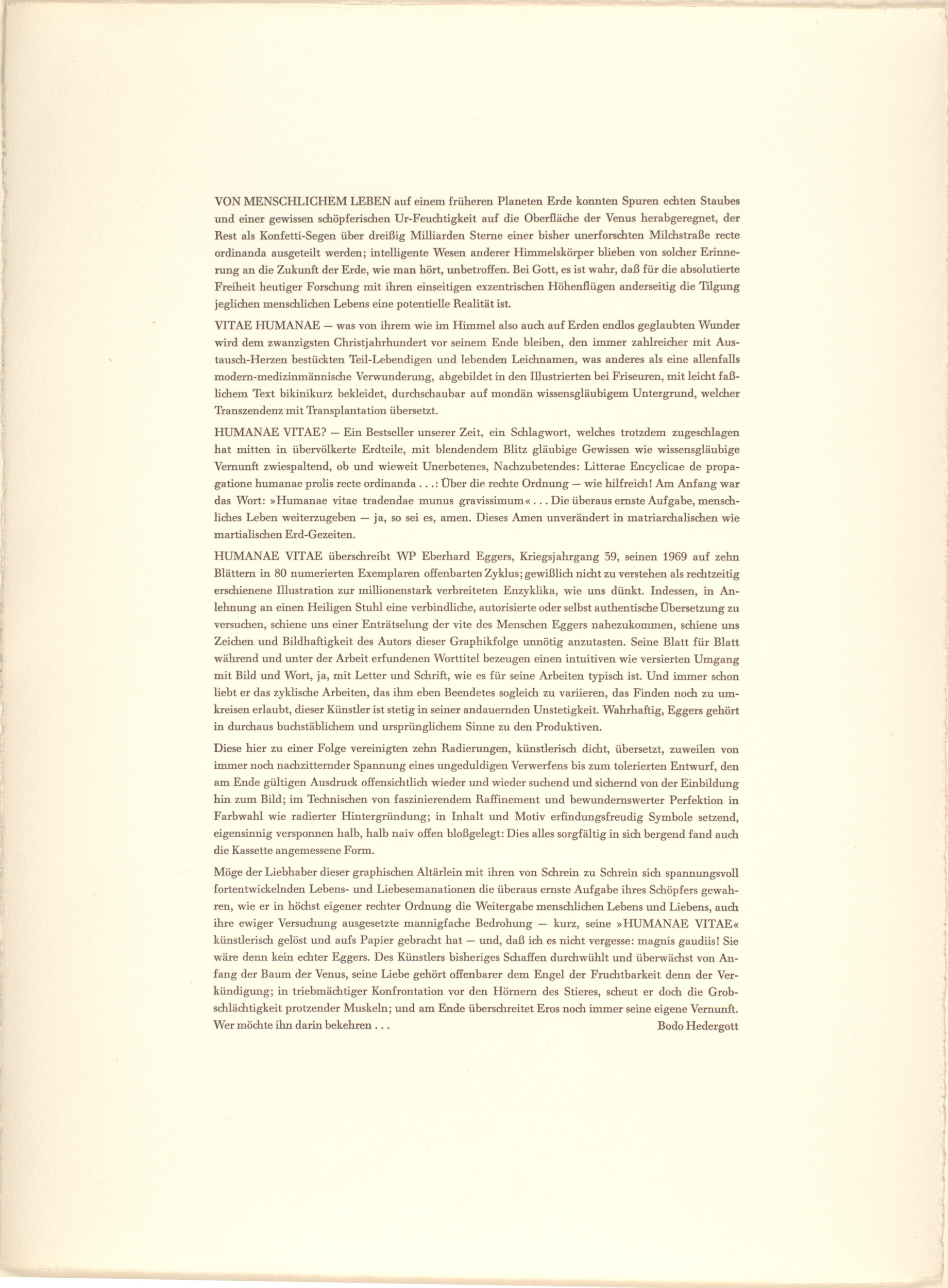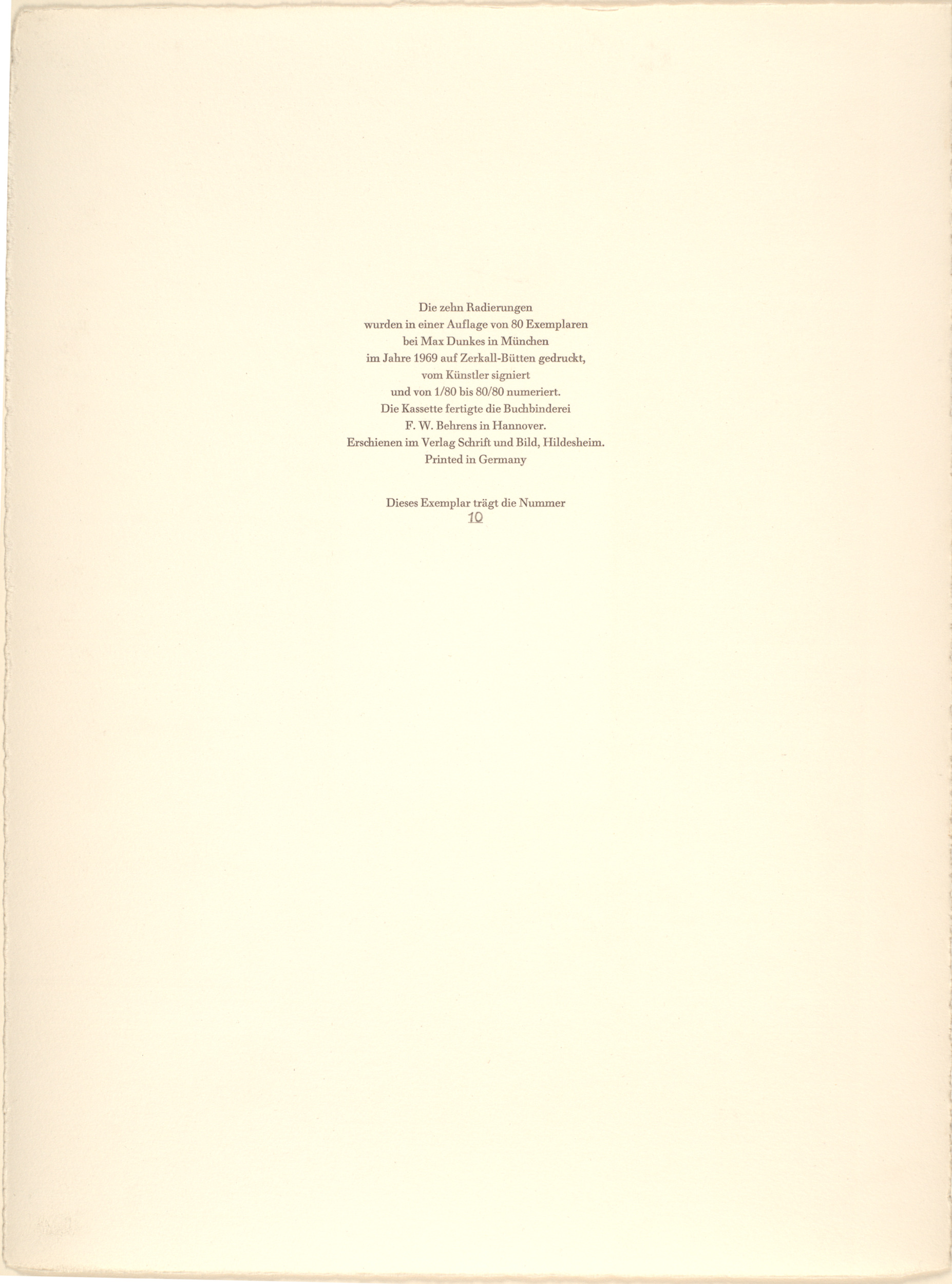 portfolio of ten etchings with aquatint, plus title page, table of contents, foreword by Bodo Hedergott, and colophon