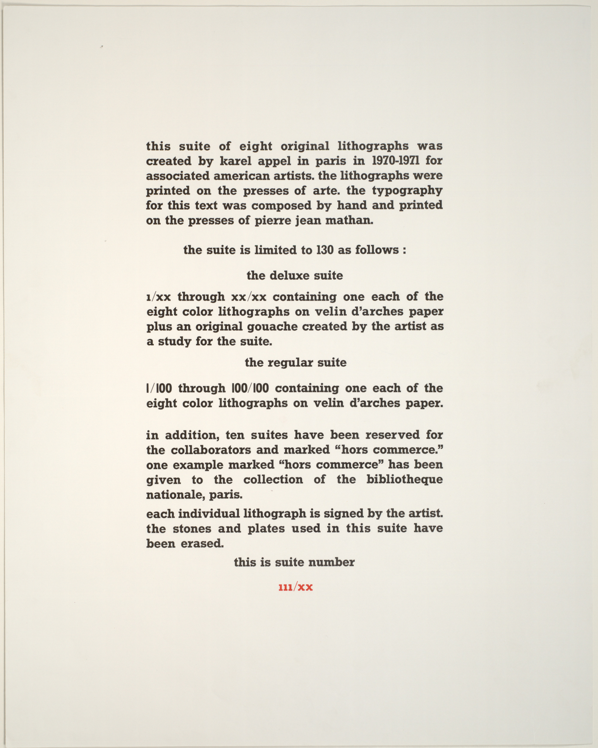 eight color lithographs on Arches vellum paper