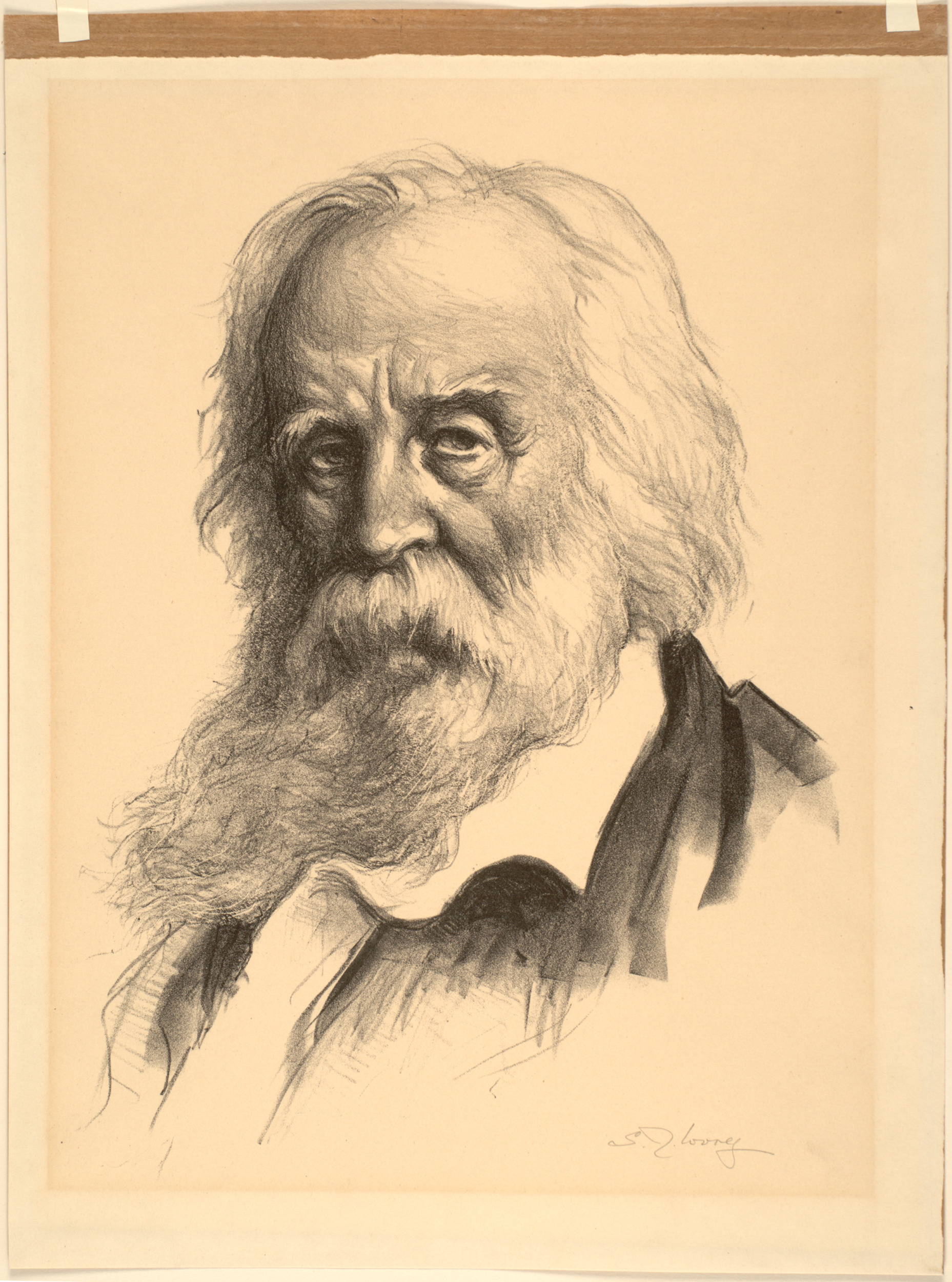 Samuel Johnson Woolf (American, 1880–1948). Walt Whitman, 1945. Lithograph, 14 3/4 x 11 3/8 inches (37.5 x 28.9 cm). Collection Albright-Knox Art Gallery, Buffalo, New York; Gift of Frederic P. Norton, 2000 (P2000:1.174). © Estate of Samuel Johnson Woolf