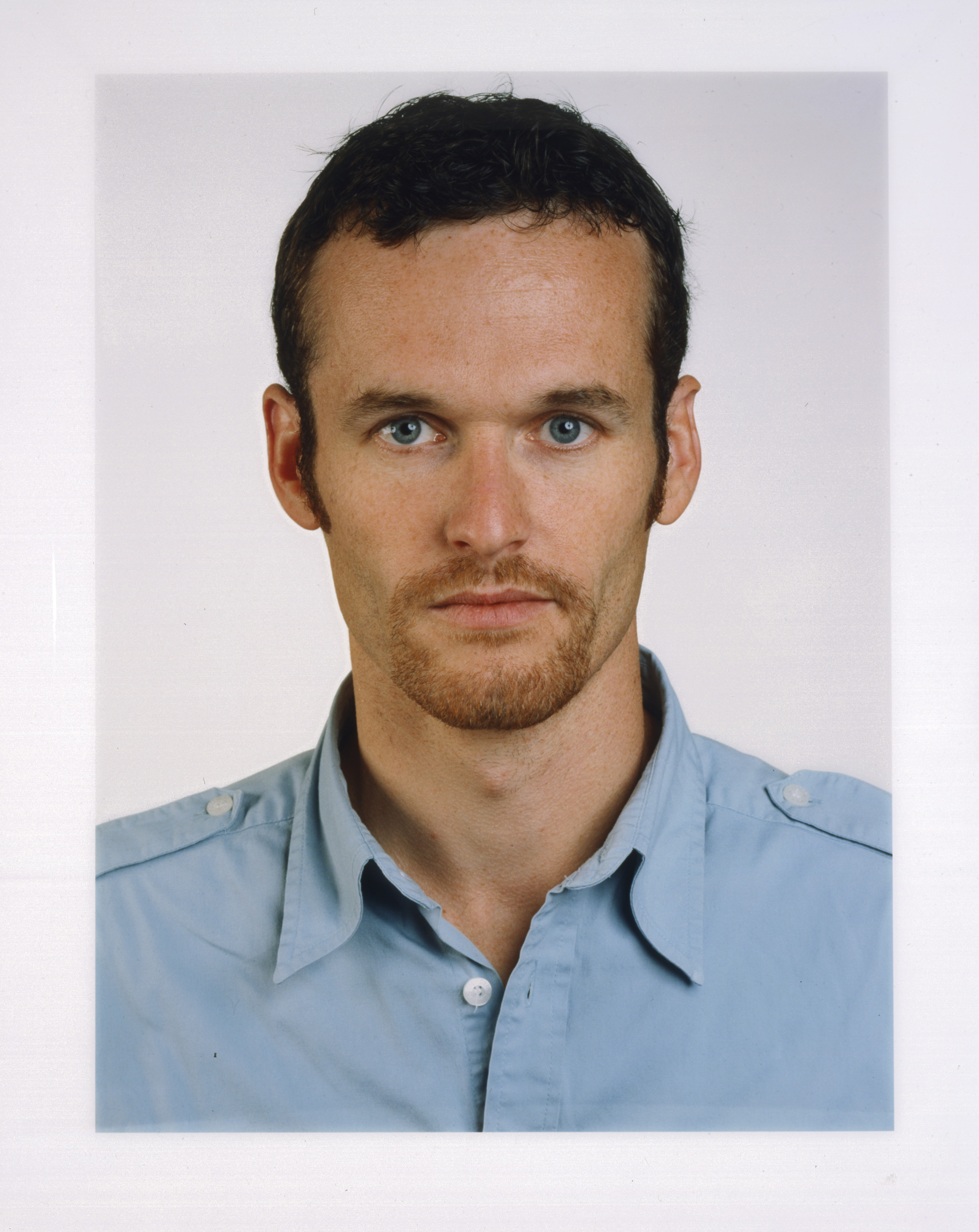 Unlike many artists, Thomas Ruff does not believe it is possible for a photograph to express anything more than the surface appearance of an individual. In his series of enlarged photographic portraits of friends, such as Portrait (R. Eisch), the figures are just objects—each presented in a frontal pose on a neutral background and illuminated by a flash that creates a bright, impersonal light. The images are successful because Ruff’s subjects knew what the artist expected and acted accordingly. Once, when Ruff was asked if his goal was to elevate ordinary people to a kind of celebrity status, he responded that he was primarily representing his own interests rather than making a statement about democracy, commenting, “My friends are more important to me than any president.”