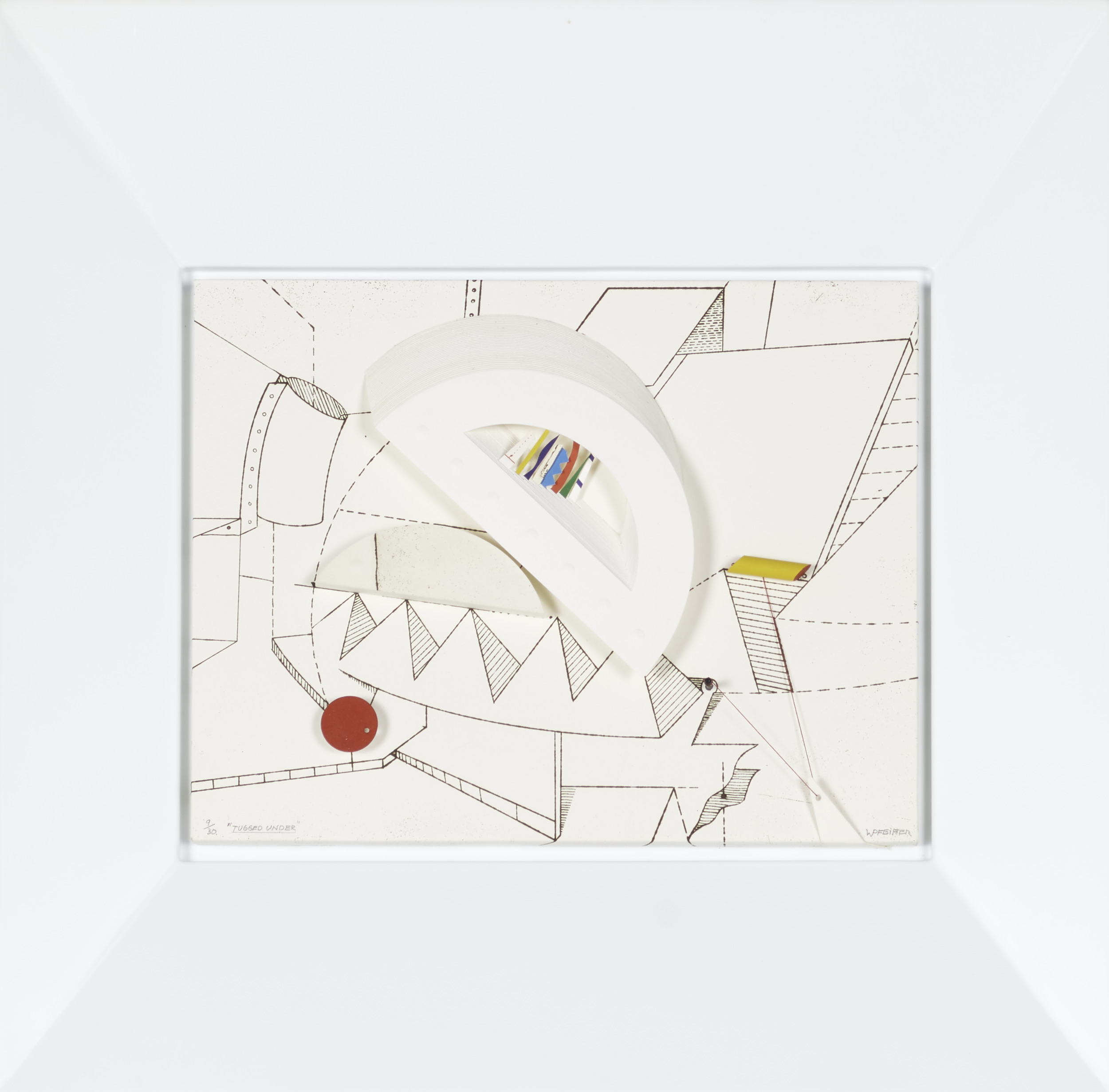 inscription / front, lower left / "TUGGED UNDER" (underlined)