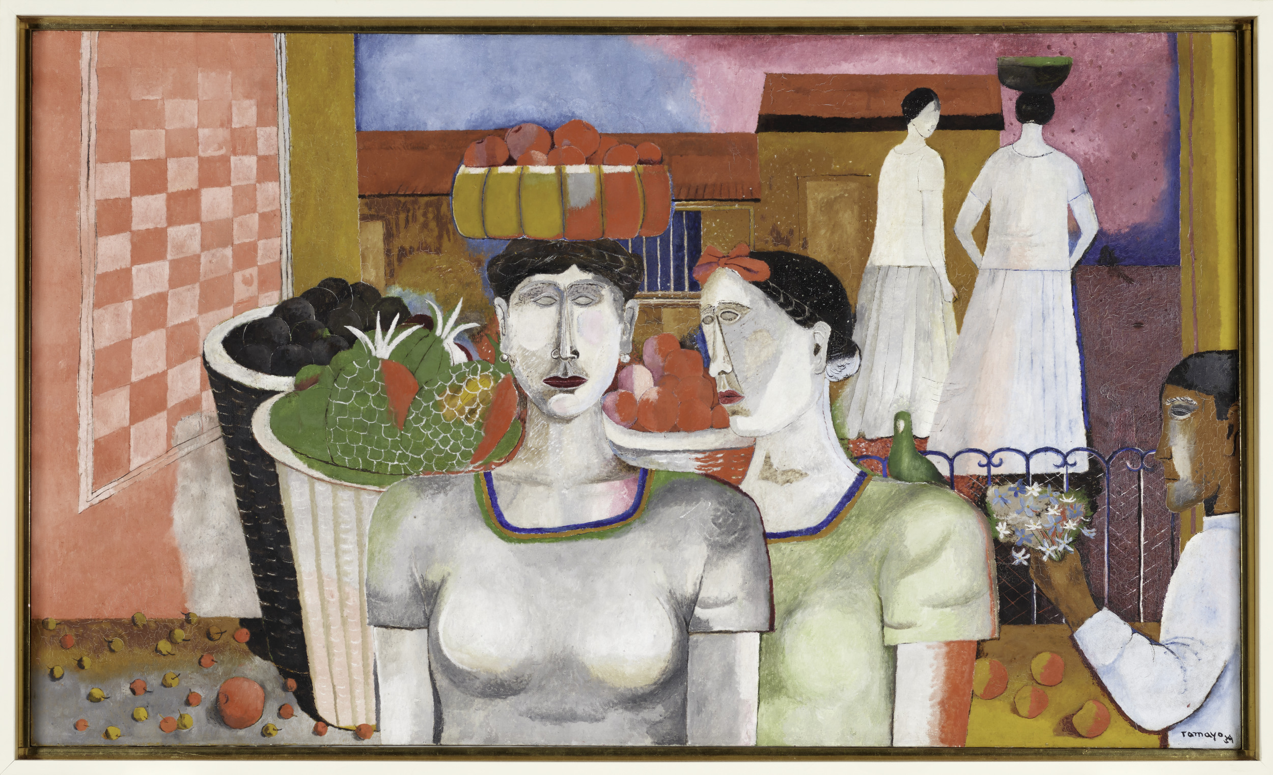 Rufino Tamayo (Mexican, 1899–1991). Women of Tehuantepec, 1939. Oil on canvas, 33 7/8 x 57 1/8 inches (86 x 145 cm). Collection Albright-Knox Art Gallery, Buffalo, New York; Room of Contemporary Art Fund, 1941 (RCA1941:21). © Tamayo Heirs/Mexico / Licensed by VAGA at Artists Rights Society (ARS), NY