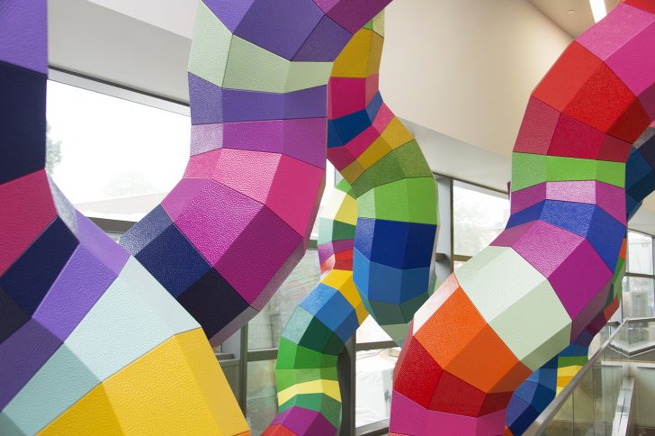 Shasti O’Leary Soudant's colorful installation at the NFTA’s Allen/Medical Campus Station, Gut Flora, is an artistic expression of the healthy and beneficial bacteria that thrive in our digestive tracts and support our digestive and immune systems.